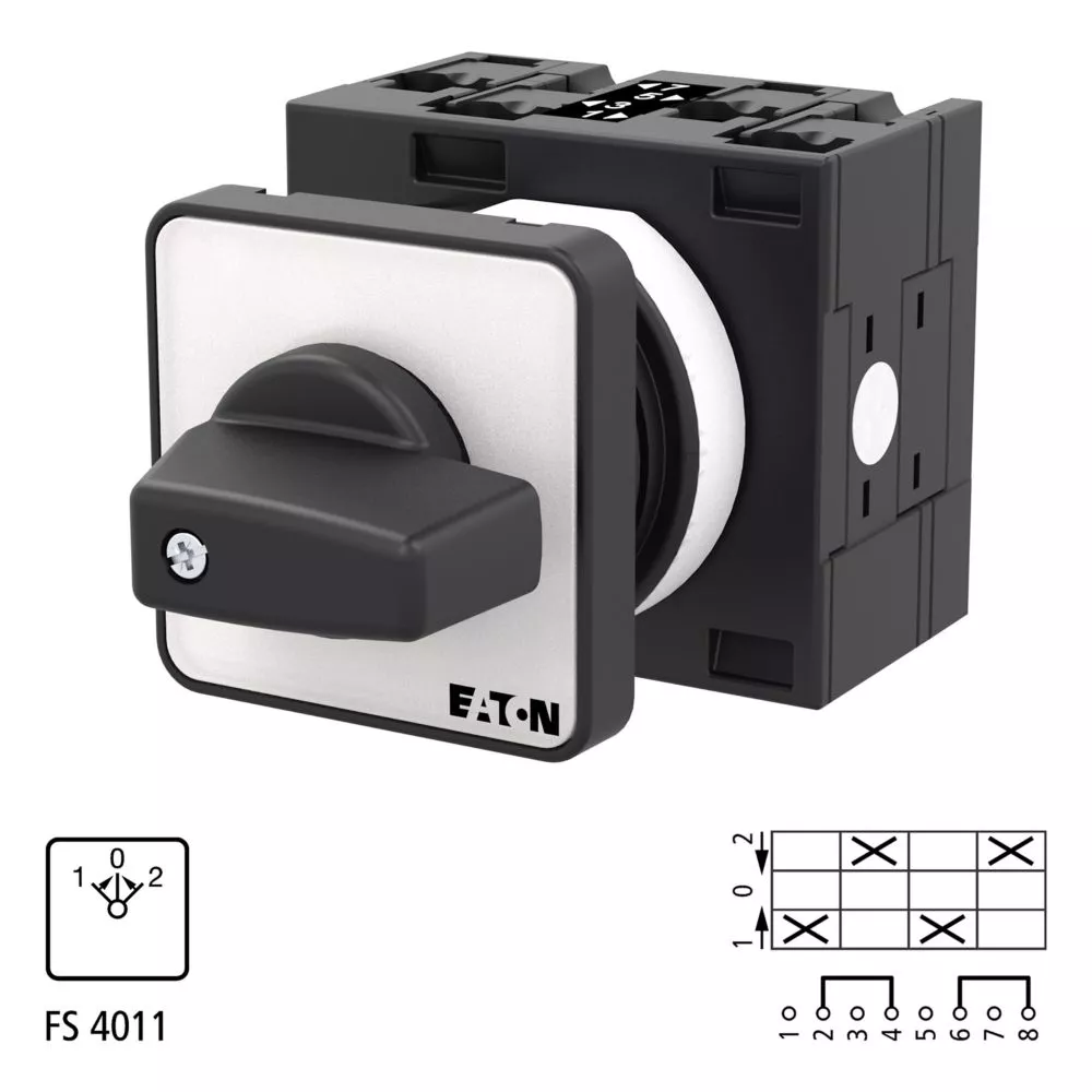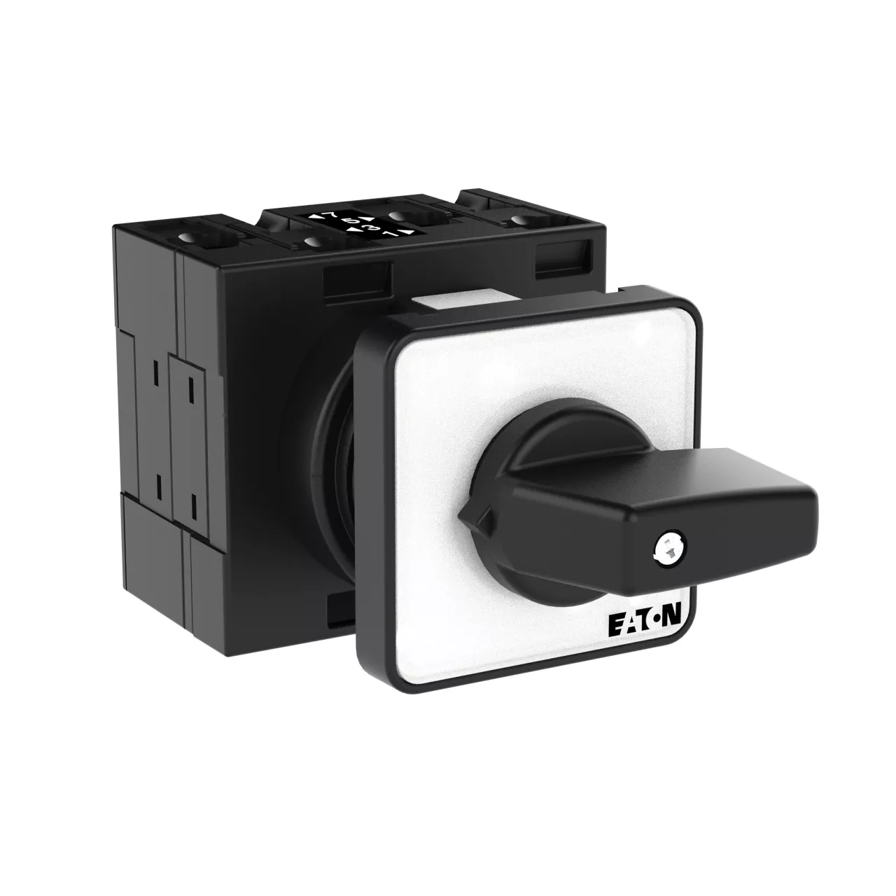 Łącznik krzywkowy wg IEC/EN60947, wielkość konstrukcyjna T3, kształt montażu, tabliczka czołowa 48X48, klasa ochrony na przedzie IP65 z czarnym pokrętłem, pomiarowy prąd stały Iu 32A, znamionowe napięcie pracy Ue 690V, dostępne akcesoria zgodnie z danymi katalogu łączników krzywkowych T