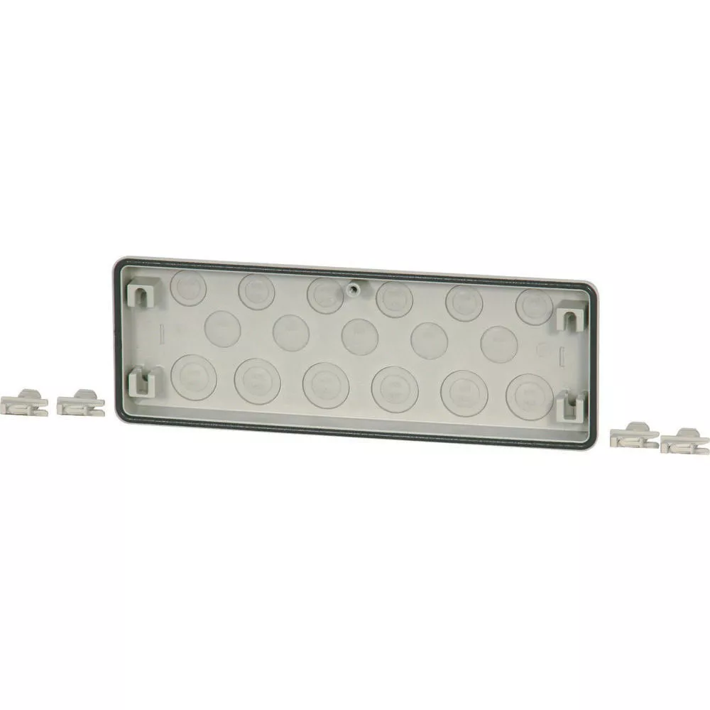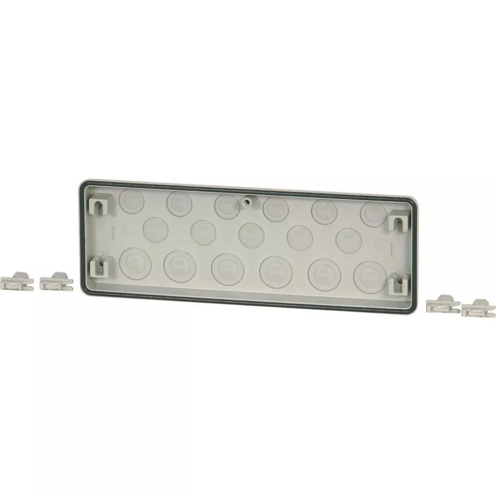 Flansza z materiału izolacyjnego, stopień ochrony IP65, piankowa uszczelka zabezpieczona przed zgubieniem, szybki montaż za pomocą połączenia klinowego (znajduje się w dostawie), do wymiarów obudowy 375mm, wprowadzenie przewodów: 5xM25, 6xM25/16, 6xM32/20