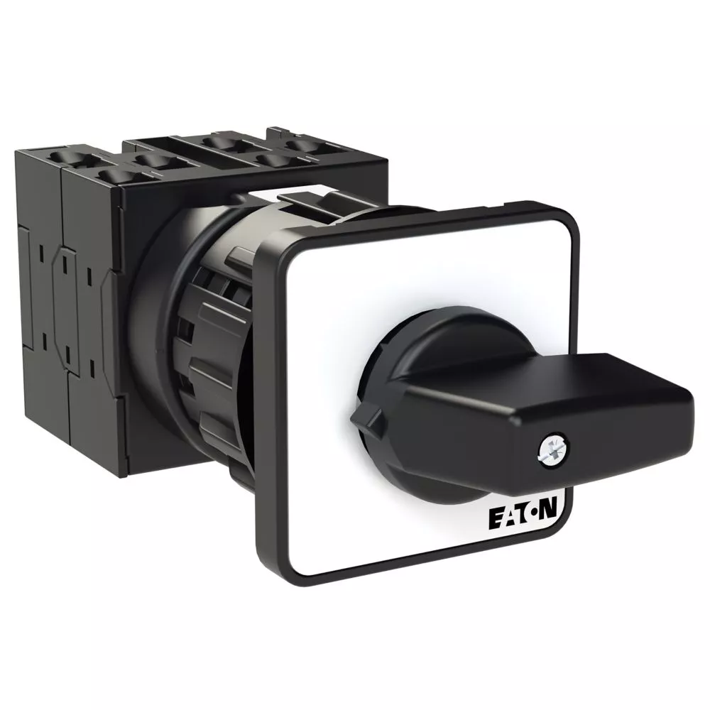 Łącznik krzywkowy wg IEC/EN60947, wielkość konstrukcyjna T0, otwór mocujący o kształcie do montażu centralnego 22,3 mm, tabliczka czołowa 48X48, klasa ochrony na przedzie IP65 z czarnym pokrętłem, pomiarowy prąd stały Iu 20A, znamionowe napięcie pracy Ue 690V, dostępne akcesoria zgodnie z danymi katalogu łączników krzywkowych T. Konstrukcja ogólna: obudowa natynkowa z izolacją, montaż, montaż centralny, montaż pośredni montaż rozdzielacza IVS.