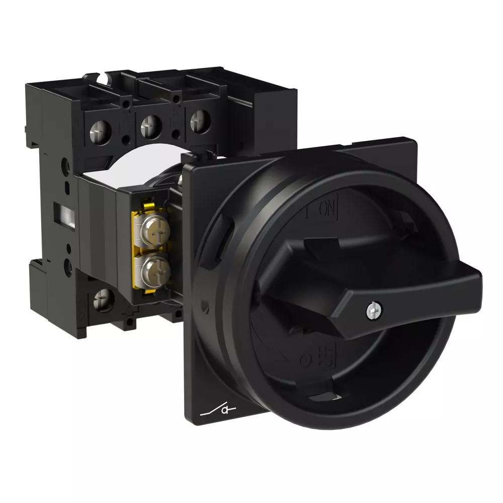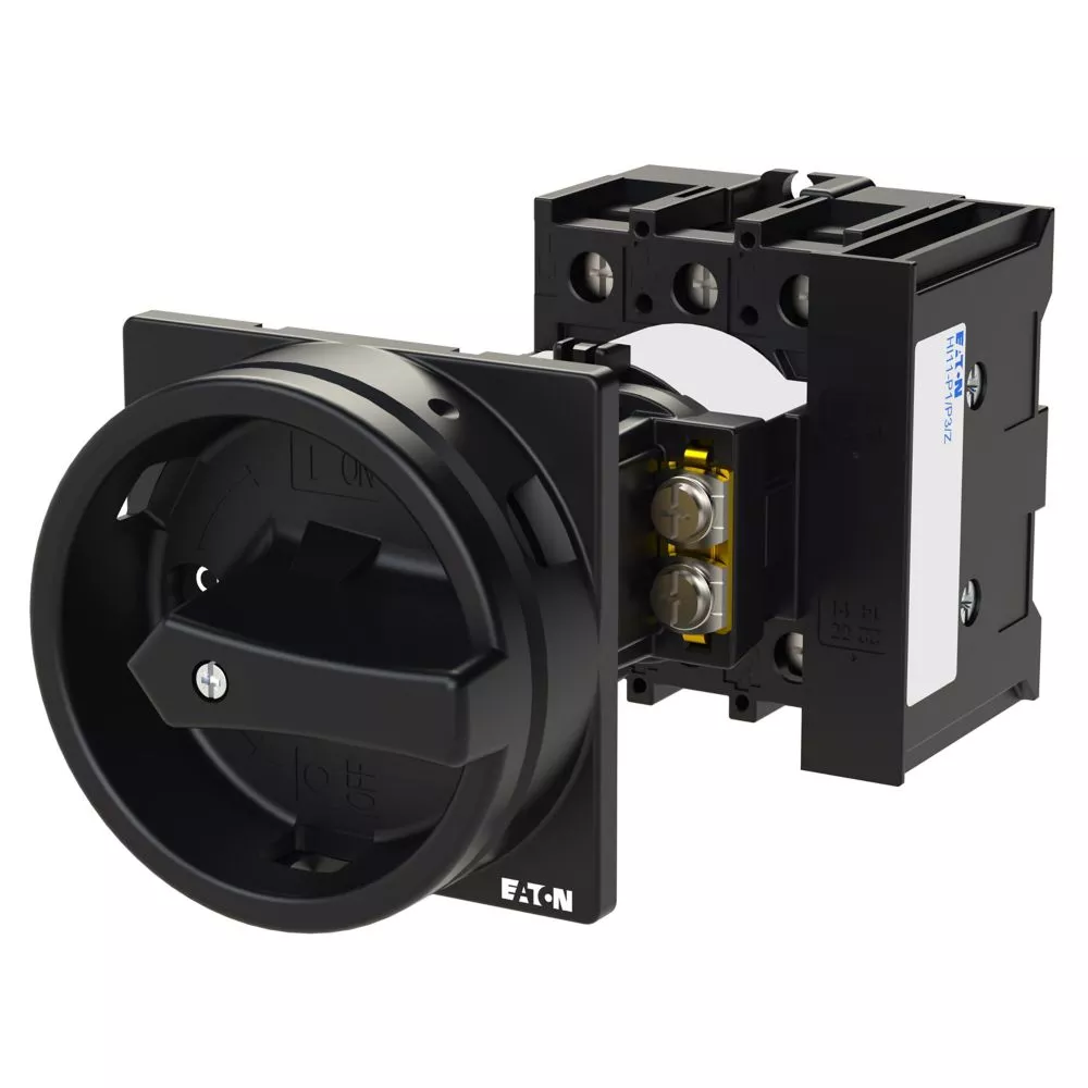Rozłącznik główny / rozłącznik izolacyjny wł./wył. wg IEC/EN 60947-3, 690V/32A, klasa ochrony przód IP65, rękojeść czarna z wieńcem blokującym czarnym, zamykanie 3 kłódkami, rozłączniki izolacyjne P1 mają niewielkie wymiary i solidną konstrukcję. Napęd ręczny działa bezpośrednio na zestyki. Zestyki po wyłączeniu rozwierają się w sposób wymuszony.. Ogólne konstrukcje: obudowa natynkowa z izolacją, montaż, montaż centralny, montaż pośredni, montaż rozdzielacza IVS
