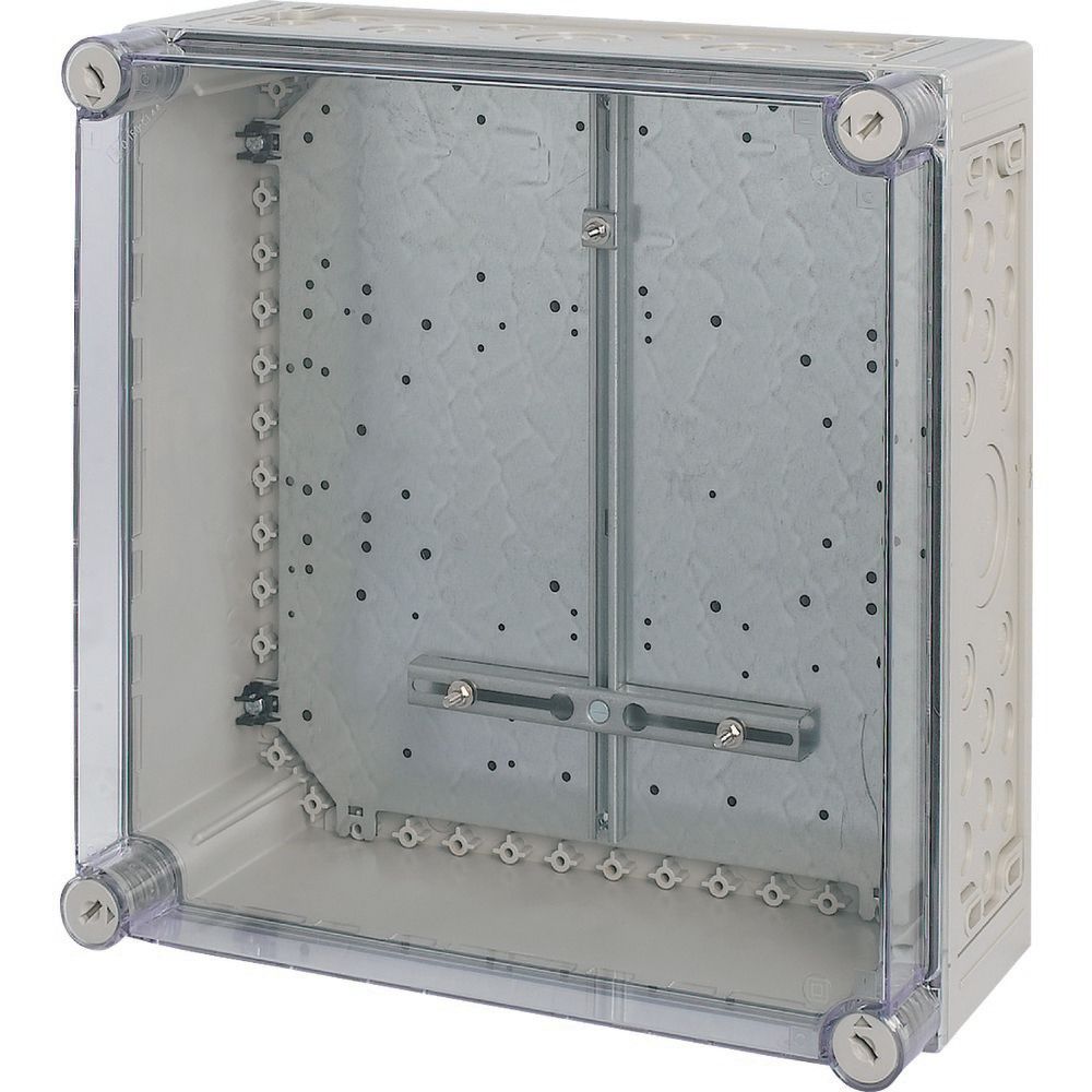 Obudowa licznika z krzyżem montażowym licznika, charakterystyka materiału Poliwęglan (PC), odporność na porażenia, opatentowane zamknięcie pokrywy z wbudowanym wyrównaniem nadciśnienia, głębokość=175mm, metryczne wytłoczenia we wszystkich ścianach bocznych, łączniki mocujące do uchwytu ściennego, plombowane zamknięcia pokrywy na górnej krawędzi pokrywy, krzyż montażowy licznika zgodny z DIN 43853 włącznie ze śrubami mocowania licznika i nakrętkami, stopień ochrony IP65, wersja pokrywy: przezroczysta