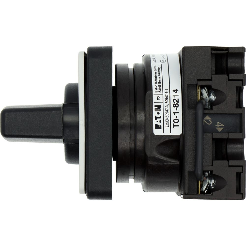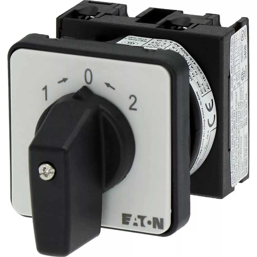 Łącznik krzywkowy wg IEC/EN60947, wielkość konstrukcyjna T0, kształt montażu, tabliczka czołowa 48X48, klasa ochrony na przedzie IP65 z czarnym pokrętłem, pomiarowy prąd stały Iu 20A, znamionowe napięcie pracy Ue 690V, dostępne akcesoria zgodnie z danymi katalogu łączników krzywkowych T. Konstrukcja ogólna: obudowa natynkowa z izolacją, montaż, montaż centralny, montaż pośredni montaż rozdzielacza IVS.