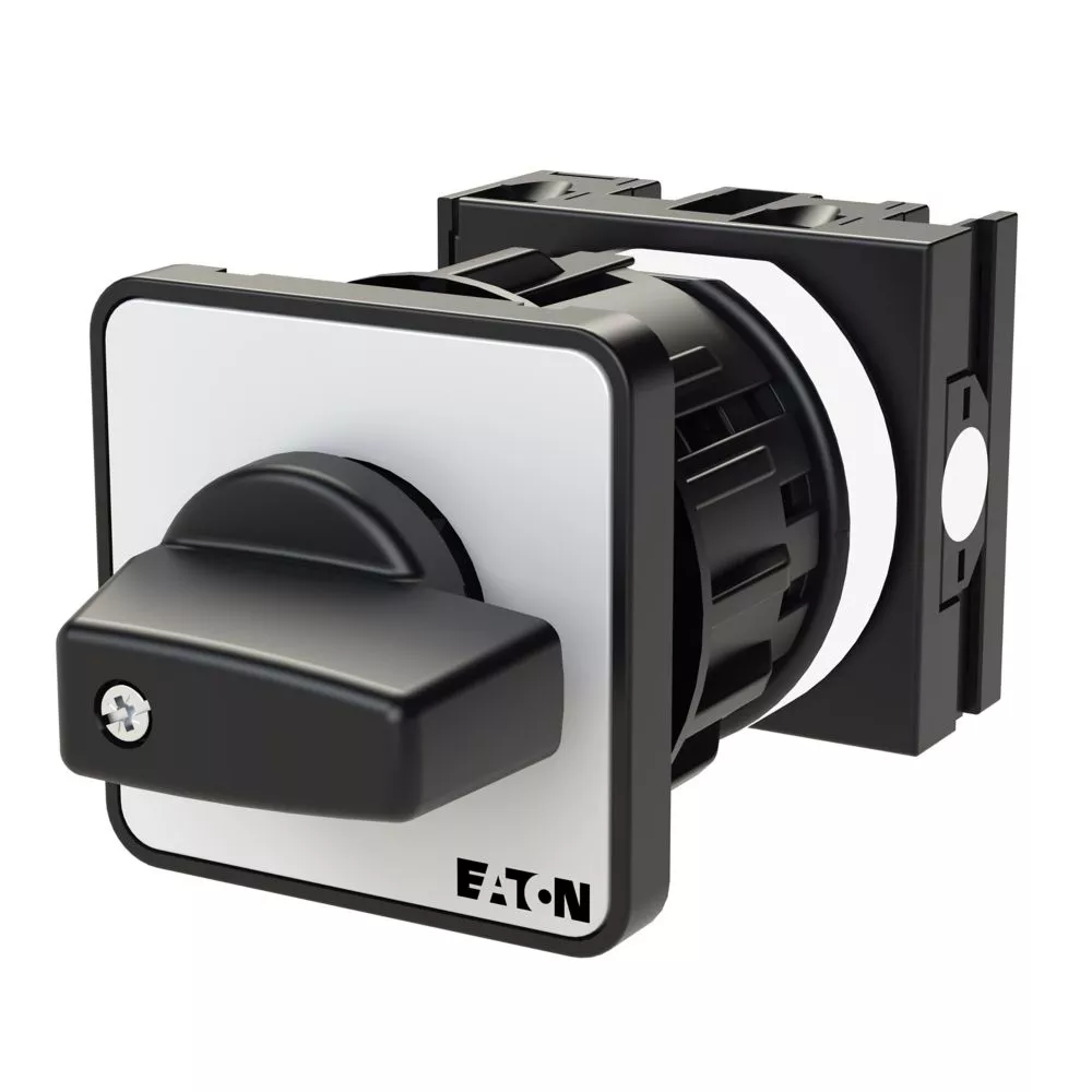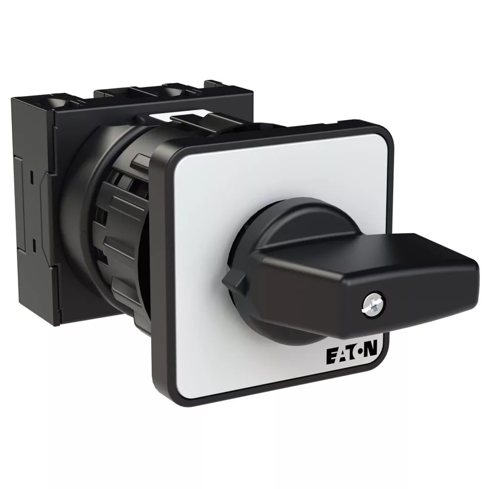 Łącznik krzywkowy wg IEC/EN60947, wielkość konstrukcyjna T0, otwór mocujący o kształcie do montażu centralnego 22,3 mm, tabliczka czołowa 48X48, klasa ochrony na przedzie IP65 z czarnym pokrętłem, pomiarowy prąd stały Iu 20A, znamionowe napięcie pracy Ue 690V, dostępne akcesoria zgodnie z danymi katalogu łączników krzywkowych T. Konstrukcja ogólna: obudowa natynkowa z izolacją, montaż, montaż centralny, montaż pośredni montaż rozdzielacza IVS.