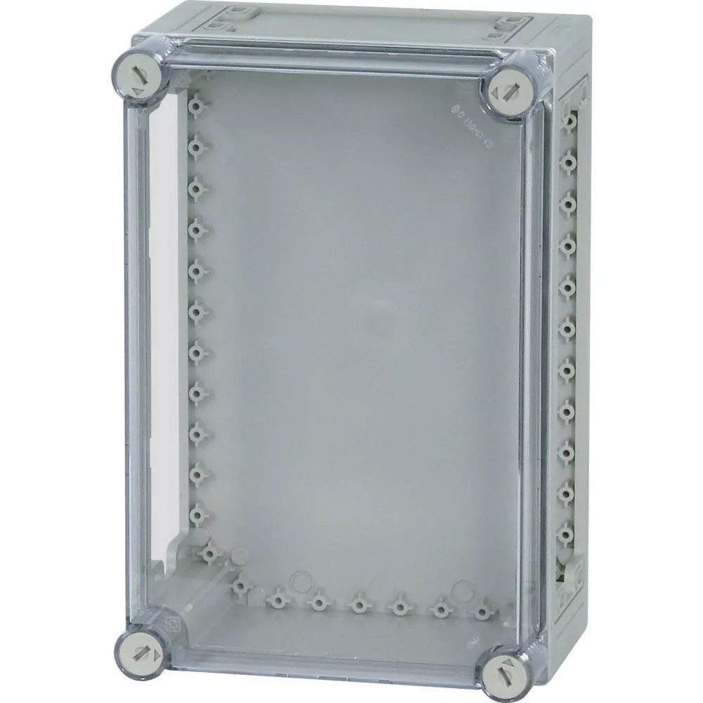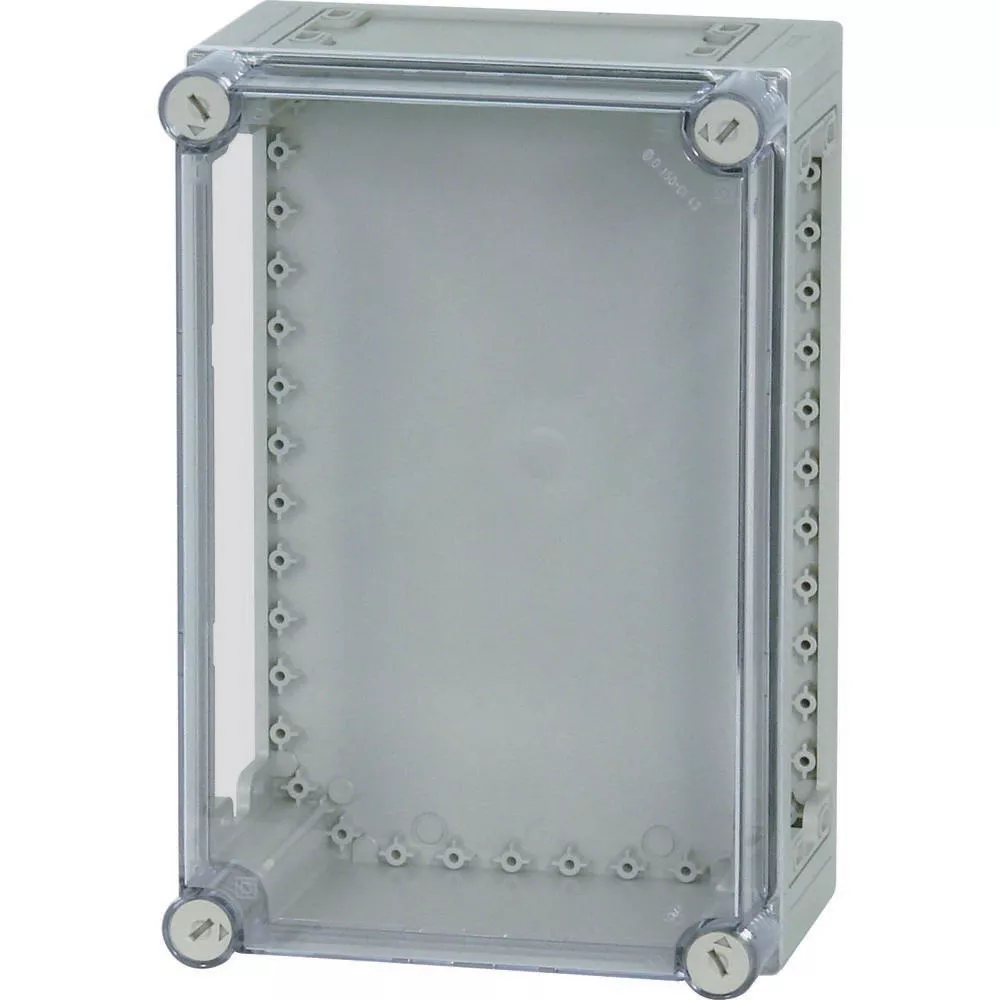 Obudowa bez wyposażenia, charakterystyka materiału Poliwęglan (PC), odporność na porażenia, stopień ochrony IP65, opatentowane zamknięcie pokrywy z wbudowanym wyrównaniem nadciśnienia, ściany boczne zamknięte, wybijana, ściany otwarte na górze i na dole, plombowane zamknięcia pokrywy, RAL 7032, piaskowa (skrzynia dolna), przezroczysta, bezbarwna (pokrywa), głębokość montażu przy płyci montażowej=150mm, wersja pokrywy: przezroczysta, wersja części dolnej: na górze i na dole otwarta