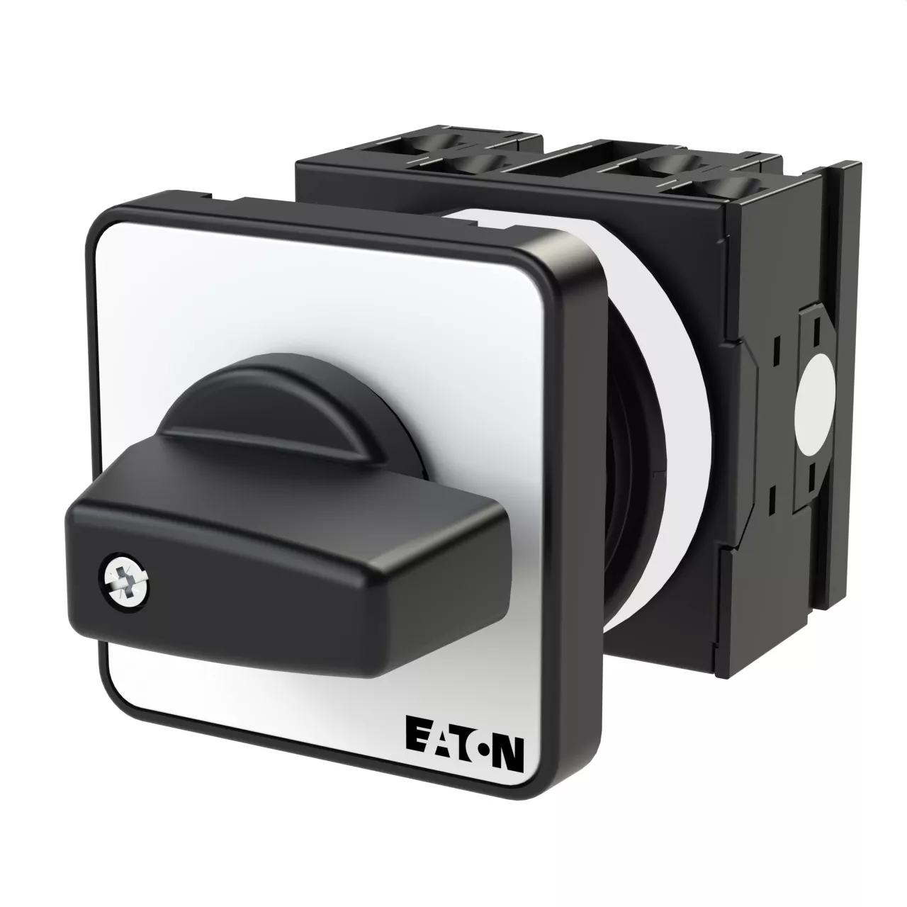 Łącznik krzywkowy wg IEC/EN60947, wielkość konstrukcyjna T0, kształt montażu, tabliczka czołowa 48X48, klasa ochrony na przedzie IP65 z czarnym pokrętłem, pomiarowy prąd stały Iu 20A, znamionowe napięcie pracy Ue 690V, dostępne akcesoria zgodnie z danymi katalogu łączników krzywkowych T. Konstrukcja ogólna: obudowa natynkowa z izolacją, montaż, montaż centralny, montaż pośredni montaż rozdzielacza IVS.