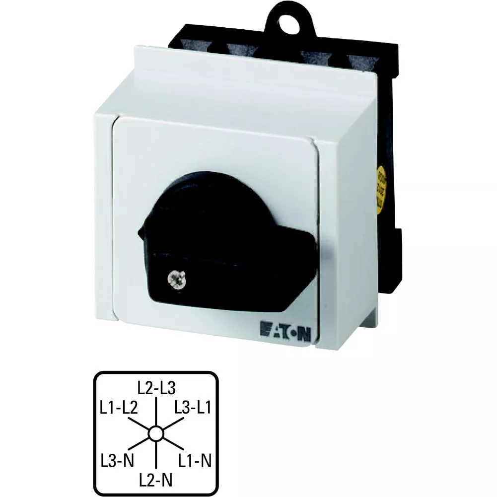 T0-3-15924/IVS Przełącznik woltomierzy, Styki: 6, 20 A, 3 x faza-faza, 3 x faza-N, tabliczka: faza/faza-faza/N, 60 °, bez samopowrotu, montaż na szynę TH, pokrętło czarne bez możliwości blokady
