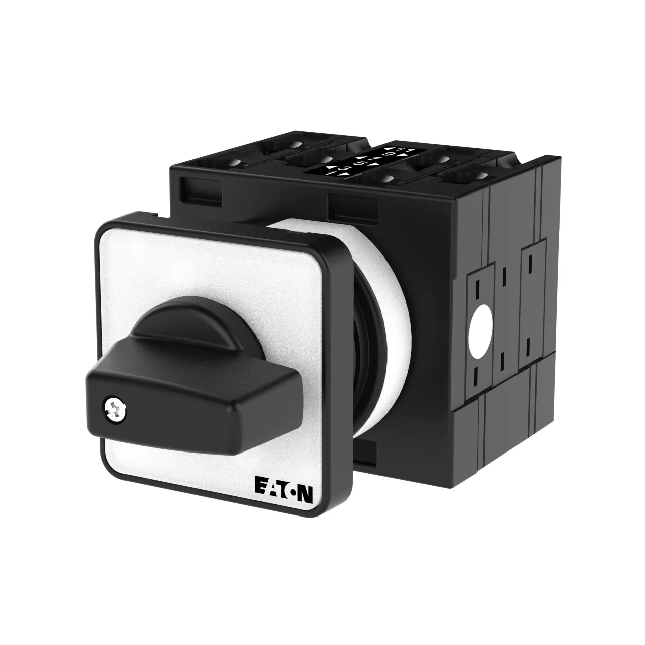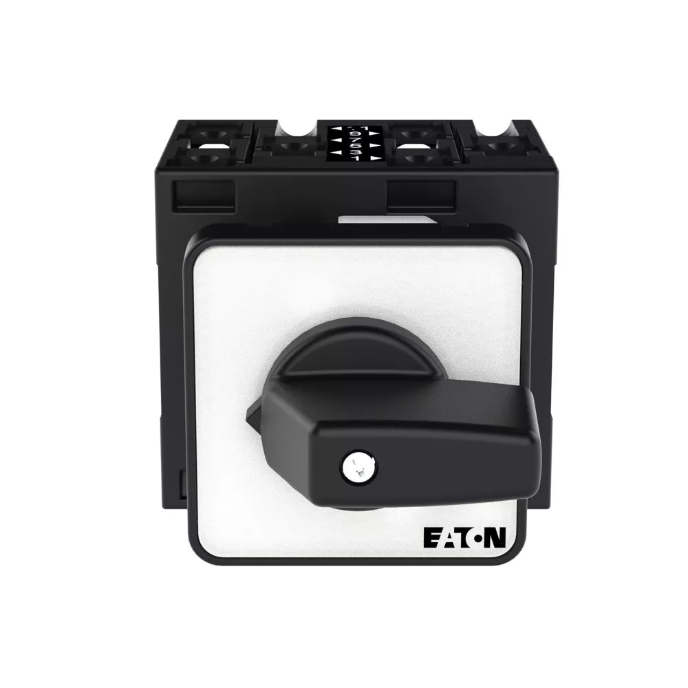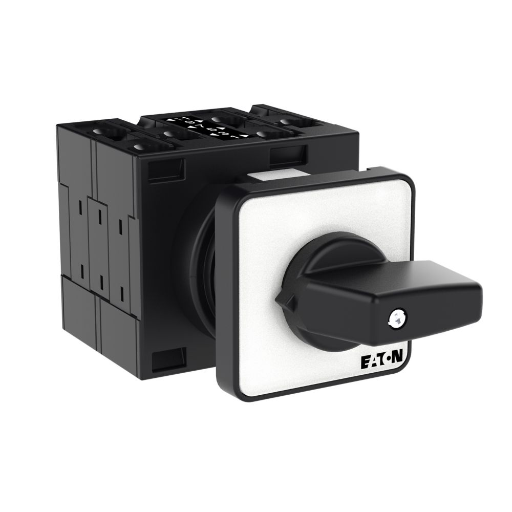 Łącznik krzywkowy wg IEC/EN60947, wielkość konstrukcyjna T3, kształt montażu, tabliczka czołowa 48X48, klasa ochrony na przedzie IP65 z czarnym pokrętłem, pomiarowy prąd stały Iu 32A, znamionowe napięcie pracy Ue 690V, dostępne akcesoria zgodnie z danymi katalogu łączników krzywkowych T