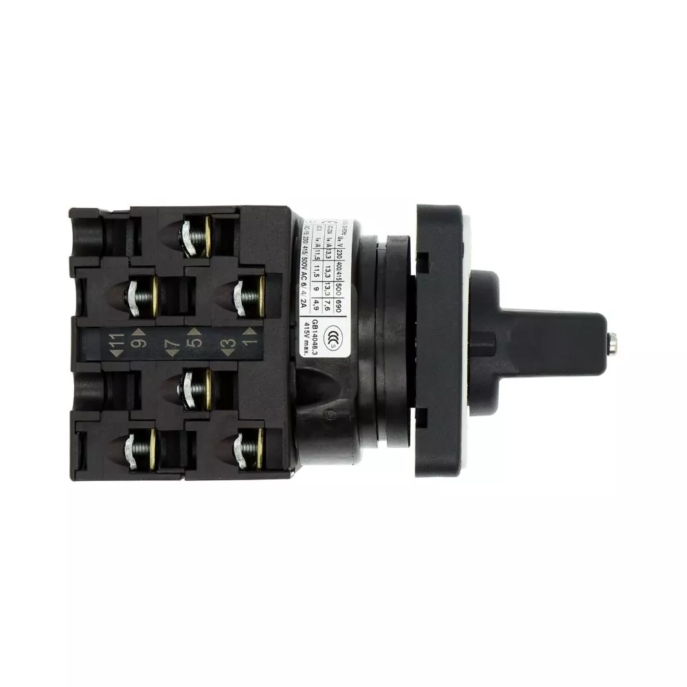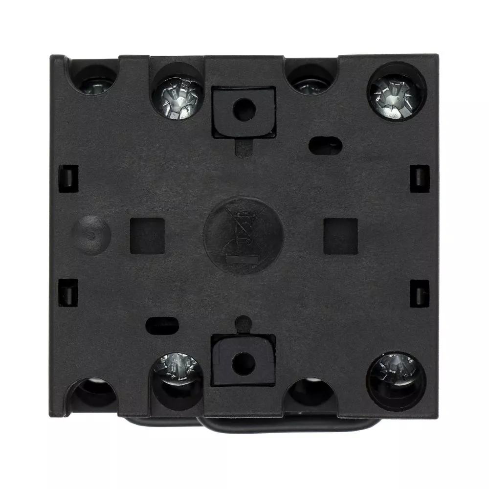 Łącznik krzywkowy wg IEC/EN60947, wielkość konstrukcyjna T0, kształt montażu, tabliczka czołowa 48X48, klasa ochrony na przedzie IP65 z czarnym pokrętłem, pomiarowy prąd stały Iu 20A, znamionowe napięcie pracy Ue 690V, dostępne akcesoria zgodnie z danymi katalogu łączników krzywkowych T. Konstrukcja ogólna: obudowa natynkowa z izolacją, montaż, montaż centralny, montaż pośredni montaż rozdzielacza IVS.