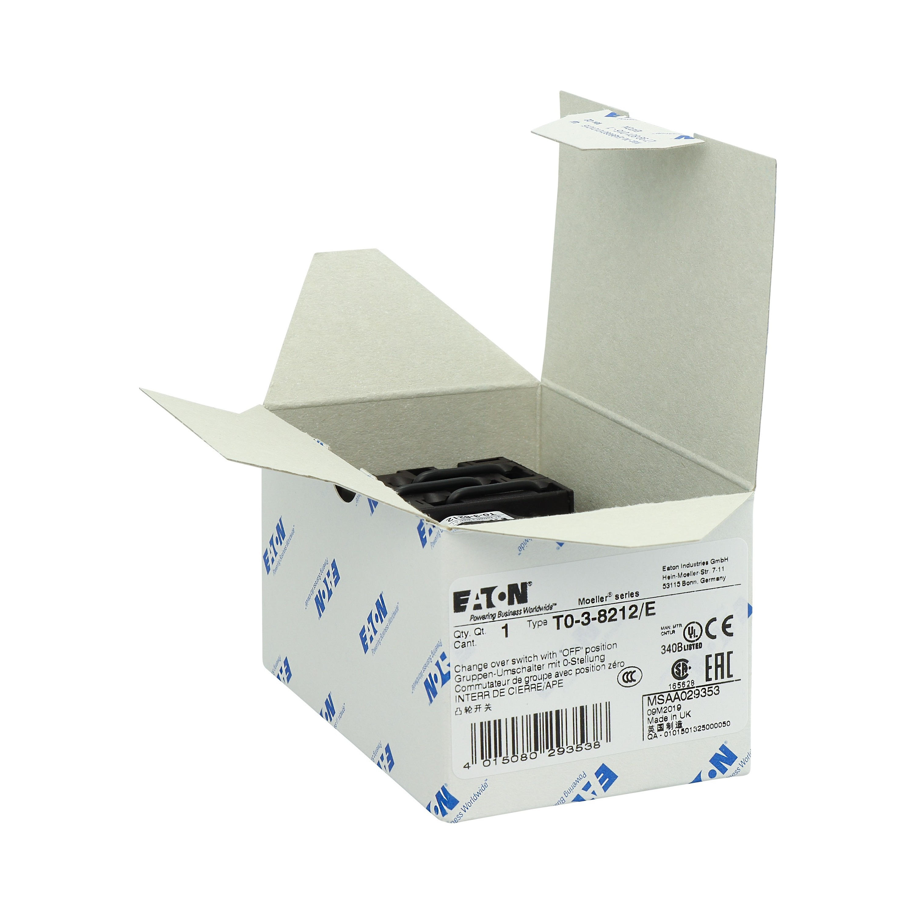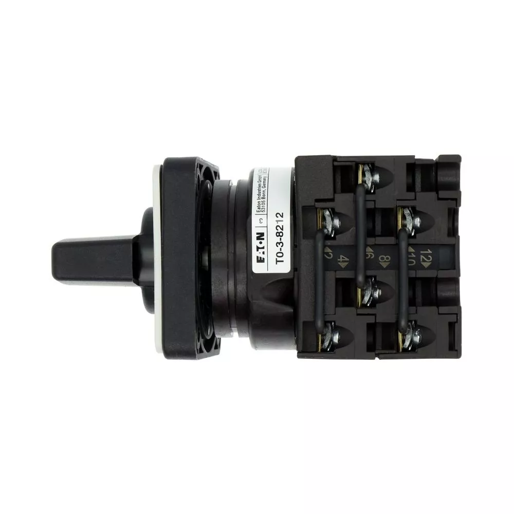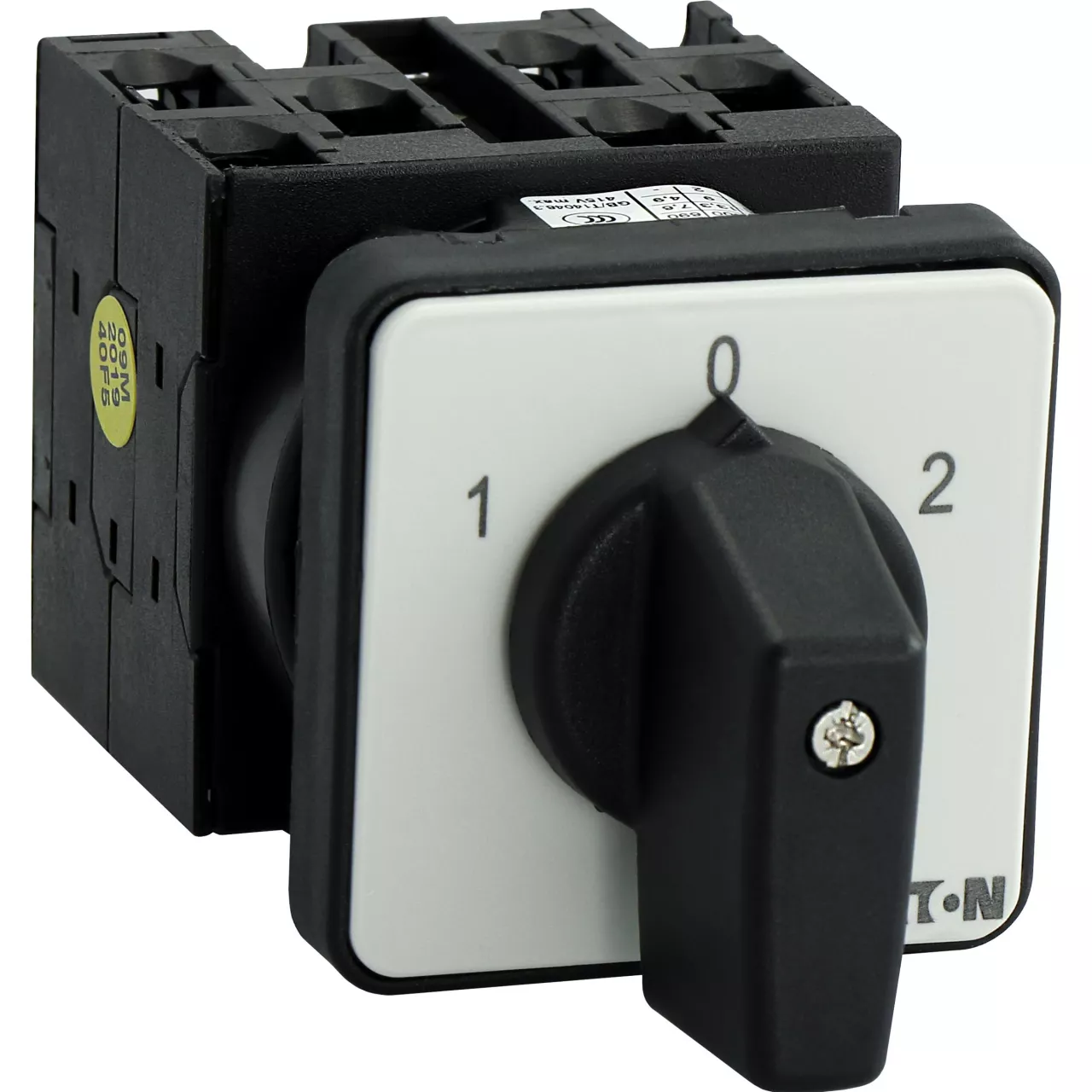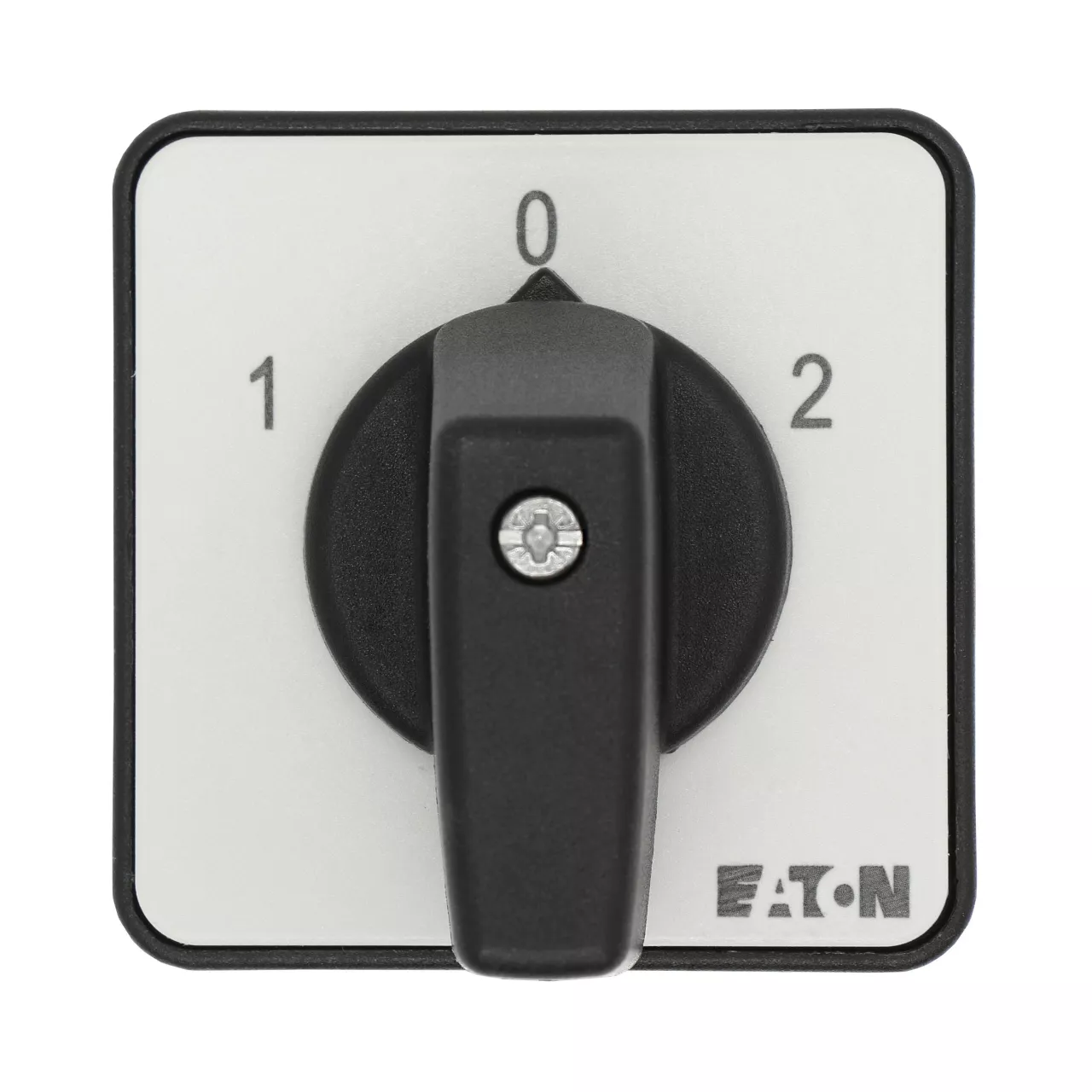 T0-3-8212/E Przełącznik zasilania, Styki: 6, 20 A, tabliczka: 1-0-2, 60 °, bez samopowrotu, montaż natablicowy, pokrętło czarne bez możliwości blokady