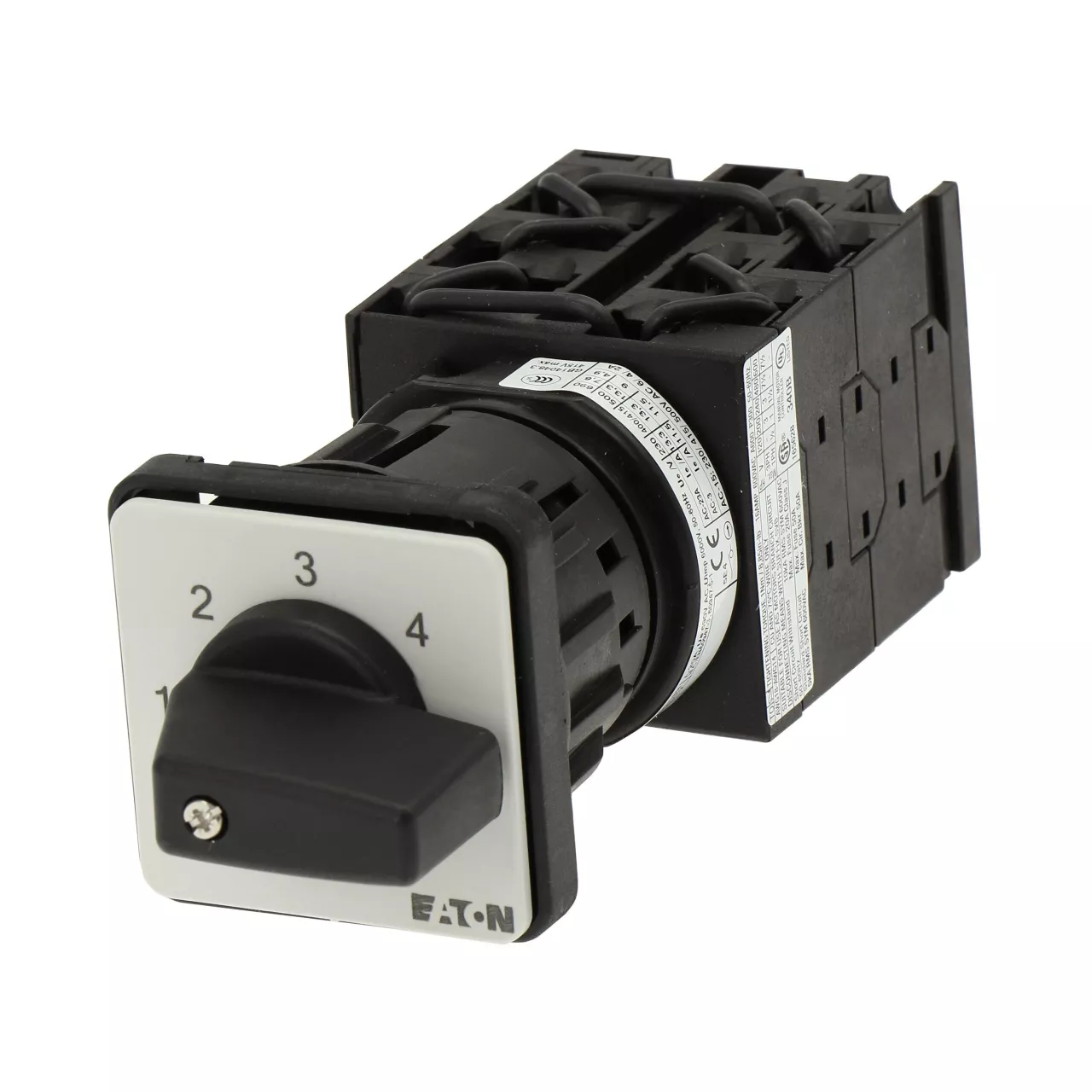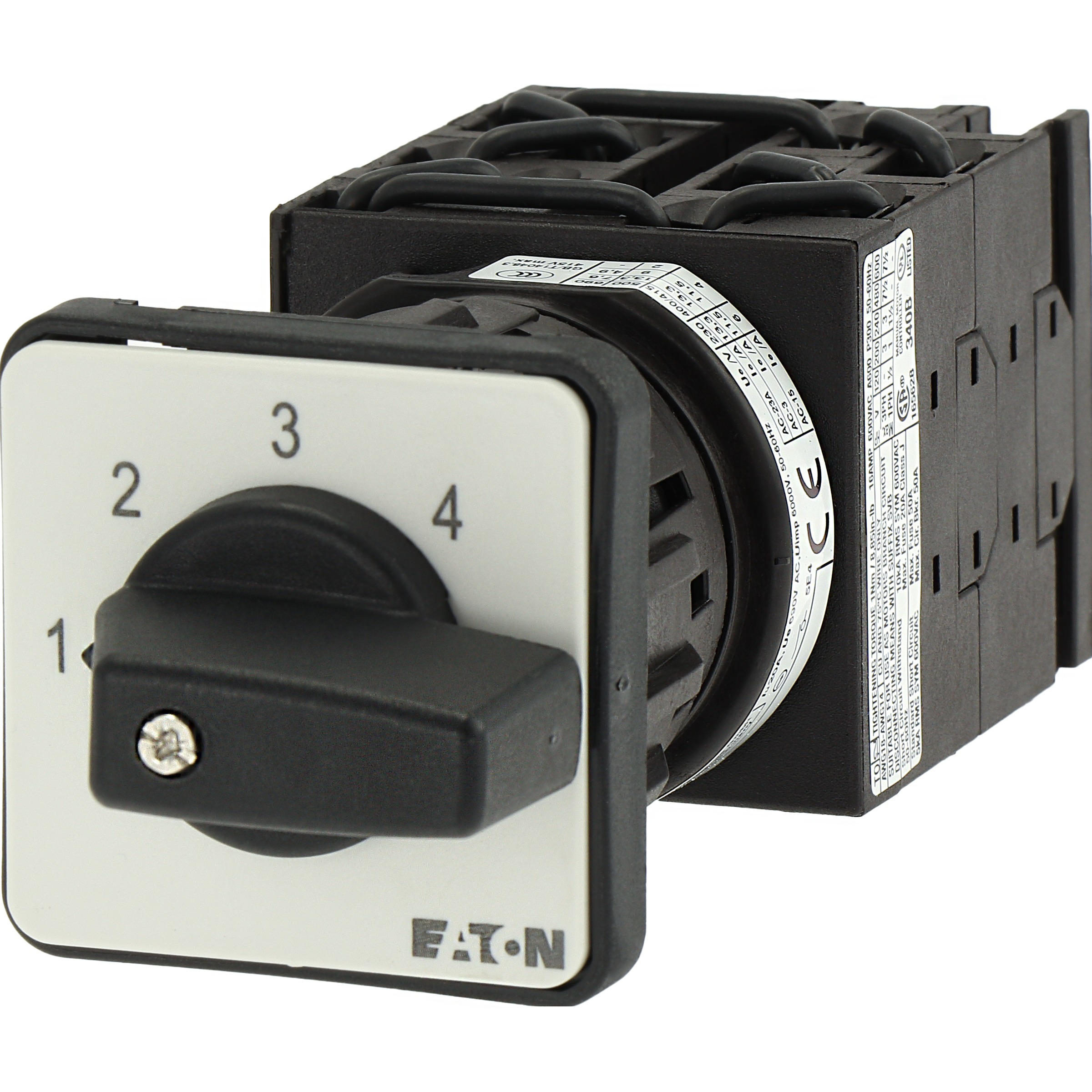 Łącznik krzywkowy wg IEC/EN60947, wielkość konstrukcyjna T0, otwór mocujący o kształcie do montażu centralnego 22,3 mm, tabliczka czołowa 48X48, klasa ochrony na przedzie IP65 z czarnym pokrętłem, pomiarowy prąd stały Iu 20A, znamionowe napięcie pracy Ue 690V, dostępne akcesoria zgodnie z danymi katalogu łączników krzywkowych T. Konstrukcja ogólna: obudowa natynkowa z izolacją, montaż, montaż centralny, montaż pośredni montaż rozdzielacza IVS.