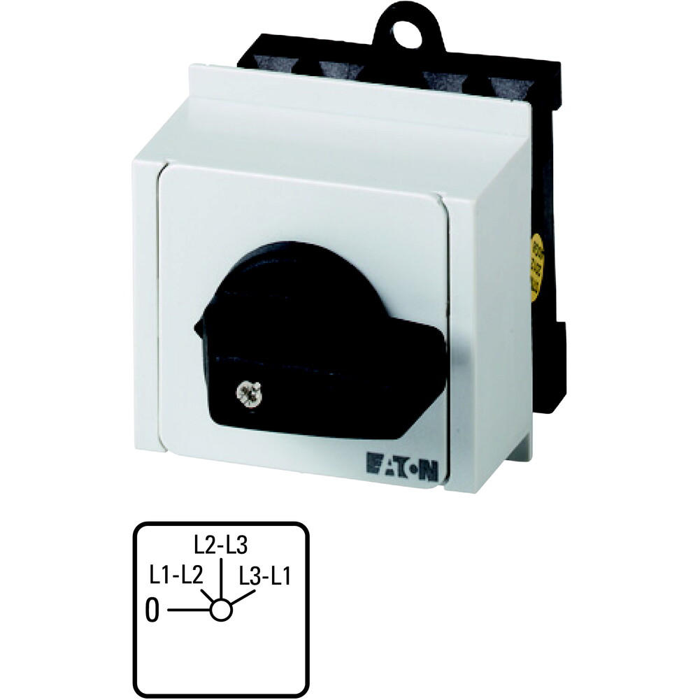 T0-2-15920/IVS Przełącznik woltomierzy, Styki: 4, 20 A, 3 x faza-faza, tabliczka: 0-faza/faza, 45 °, bez samopowrotu, montaż na szynę TH, pokrętło czarne bez możliwości blokady