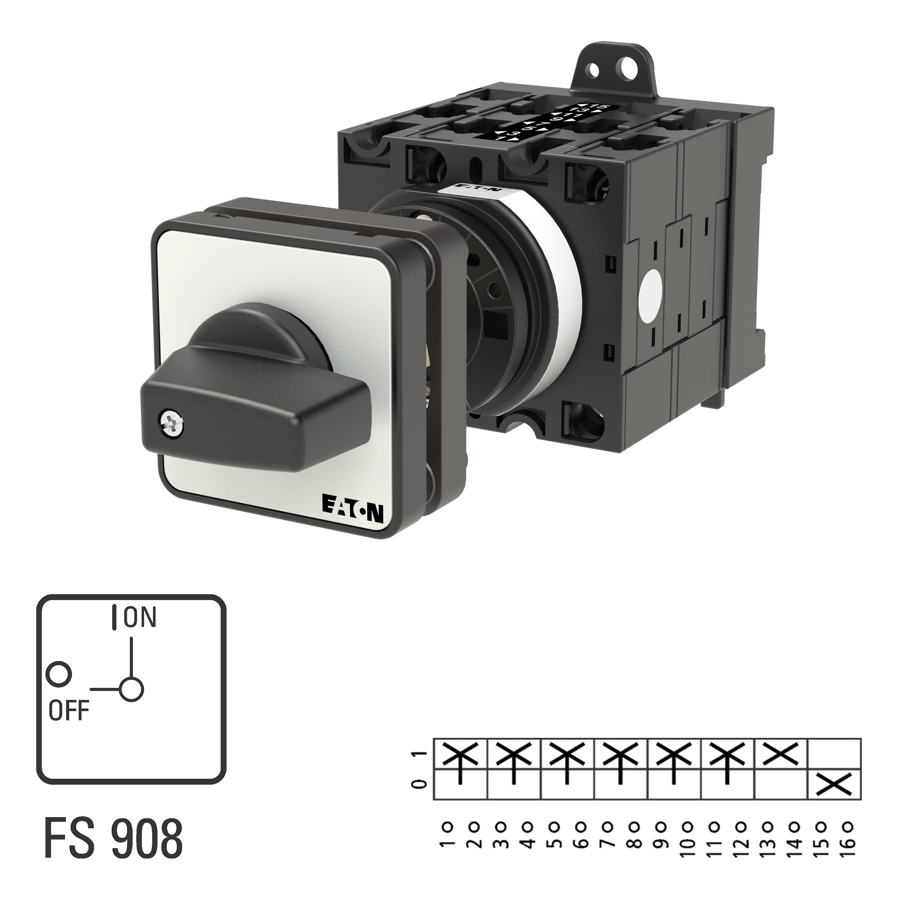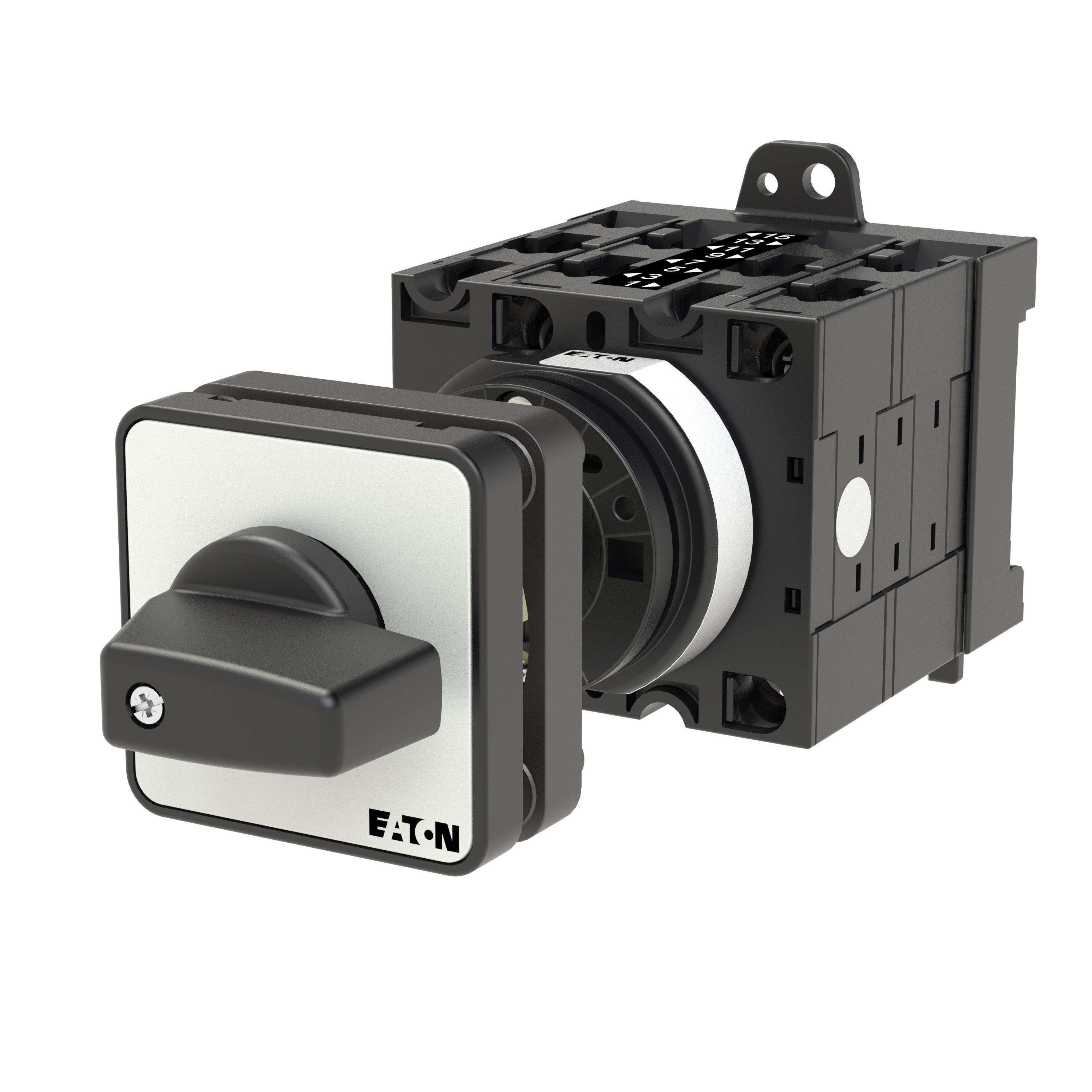 T3-4-15682/Z Przełącznik Zał.-Wył., 6 bieg. + 1 NO + 1 NC, 32 A, 90 °, montaż rozłączny, pokrętło czarne bez możliwości blokady