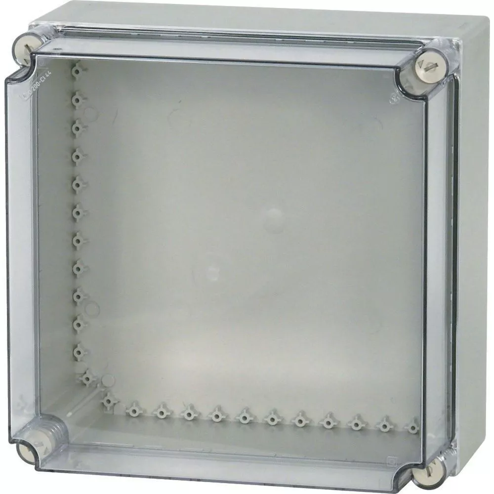 Pojedyncza obudowa bez wyposażenia, charakterystyka materiału Poliwęglan (PC), odporność na porażenia, stopień ochrony IP65, opcjonalna możliwość zamykania za pomocą DVZ...-CI, opatentowane zamknięcie pokrywy z wbudowanym wyrównaniem nadciśnienia, ściany boczne gładkie, bez wytłoczeń, łączniki mocujące do uchwytu ściennego, plombowane zamknięcia pokrywy, RAL 7032, piaskowa (skrzynia dolna), przezroczysta, bezbarwna (pokrywa), głębokość montażu przy płyci montażowej=200mm, wersja pokrywy: przezroczysta, wersja części dolnej: gładka
