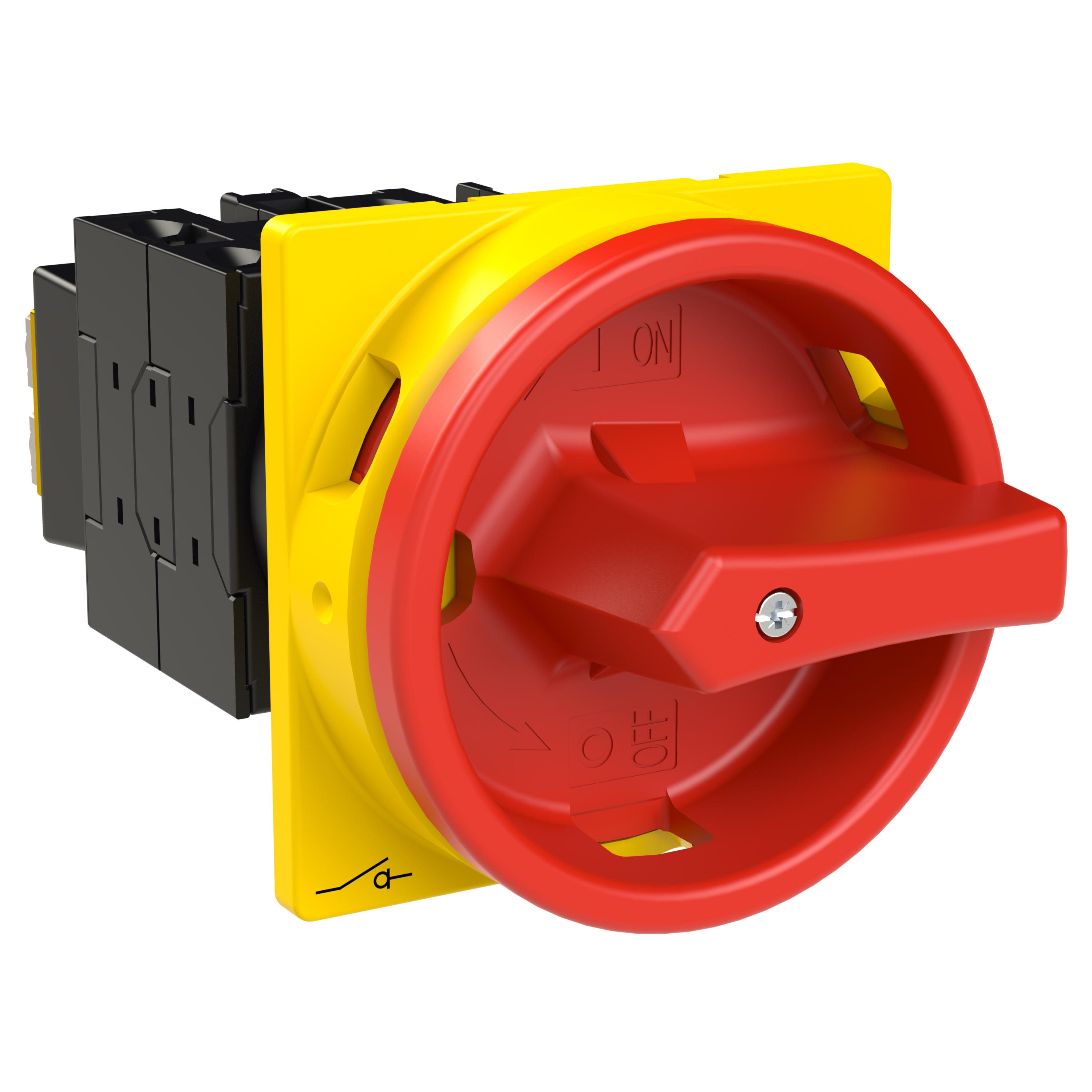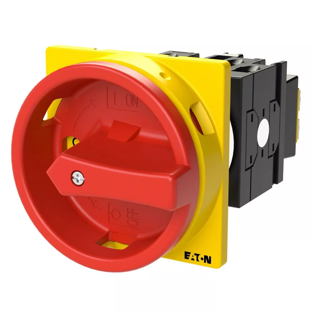 T0-3-15680/EA/SVB Rozłącznik główny, 3 bieg. + N + 1 NO + 1 NC, 20 A, funkcja awaryjnego zatrzymania, 90 °, blok. na kłódkę w pozycji Wył., montaż natablicowy, pokrętło czerwono-żółte z blokadą na kłódkę