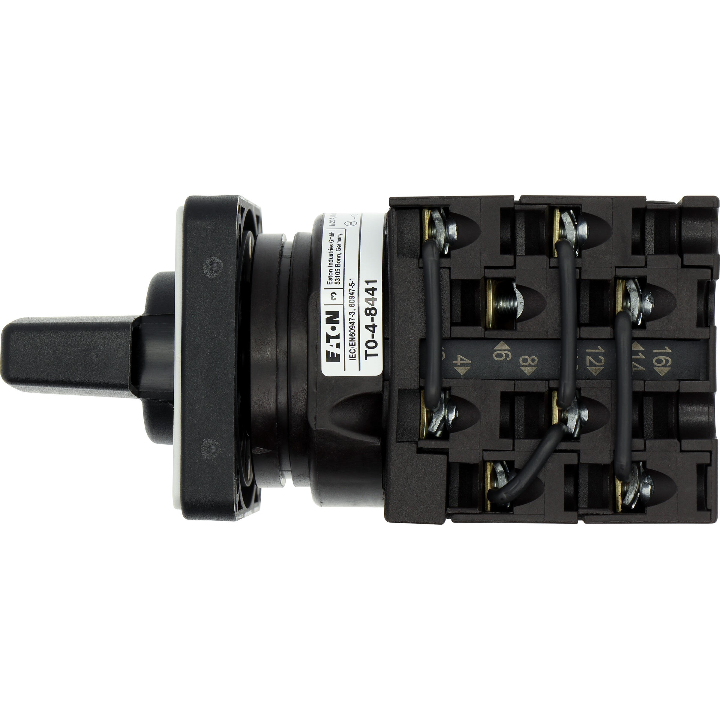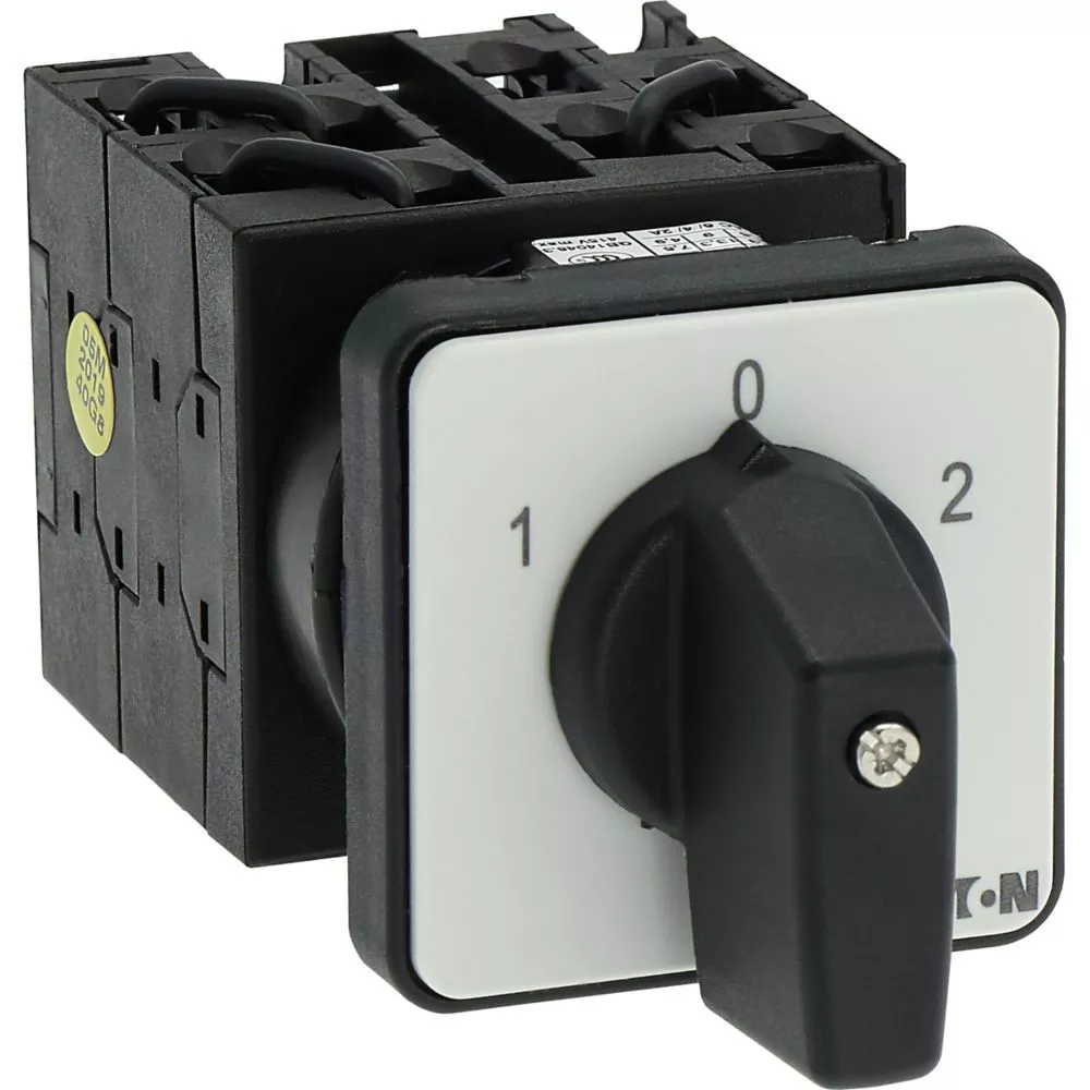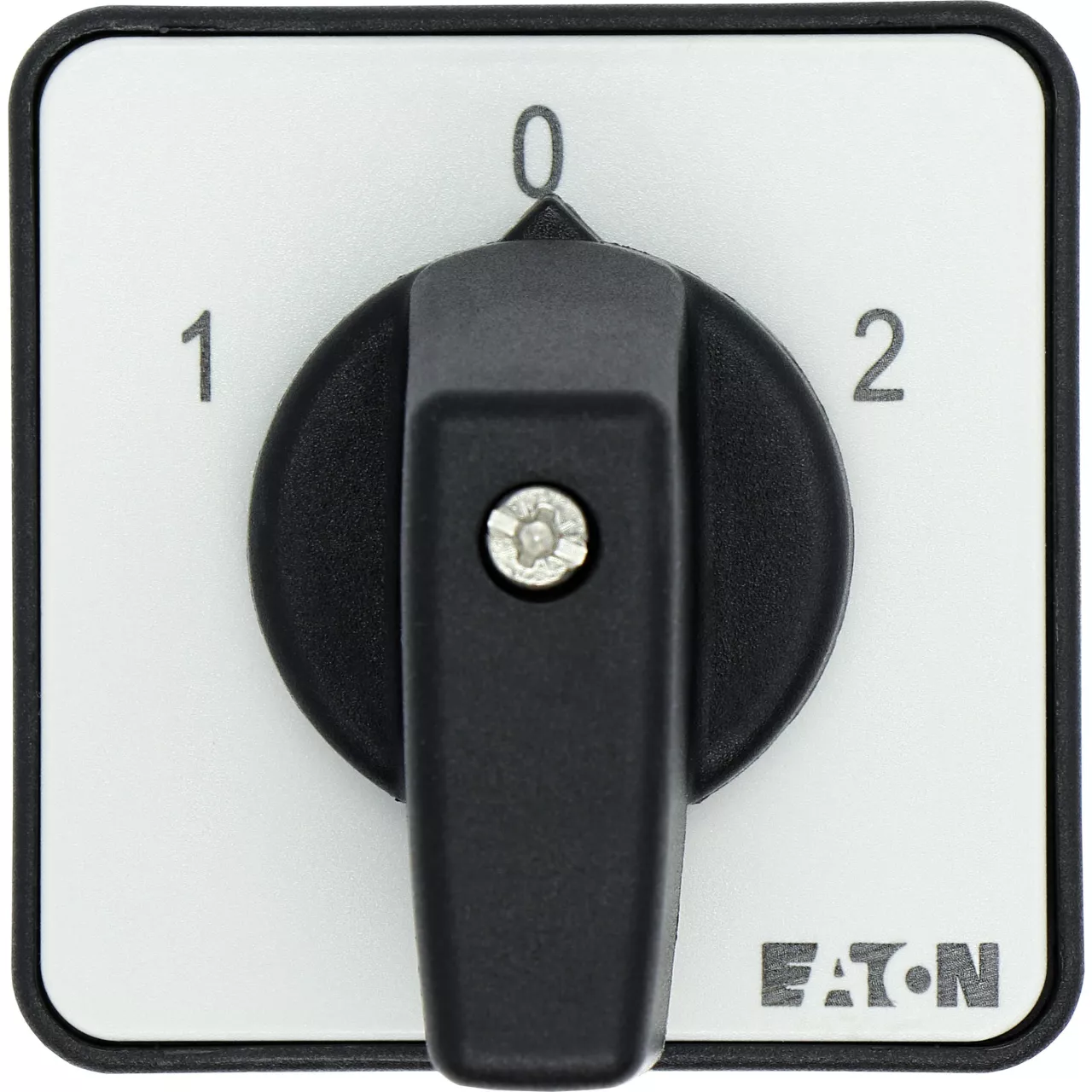 T0-4-8441/E Przełącznik liczby biegunów, Styki: 8, 20 A, układ Dahlandera, 2 prędkości, tabliczka: 1-0-2, 60 °, bez samopowrotu, montaż natablicowy, pokrętło czarne bez możliwości blokady