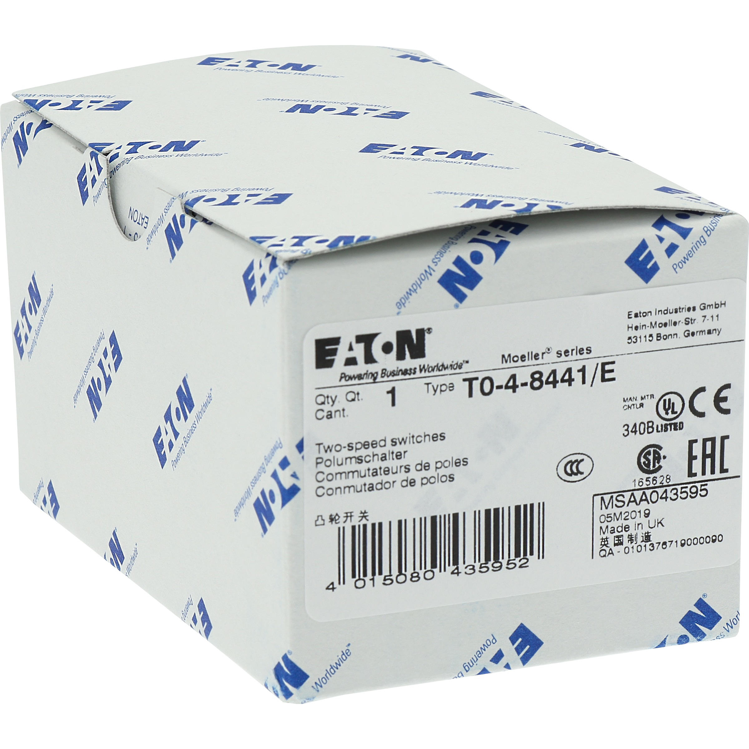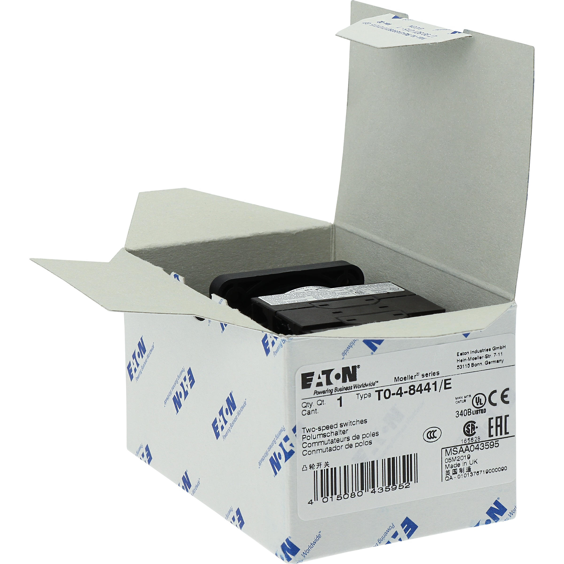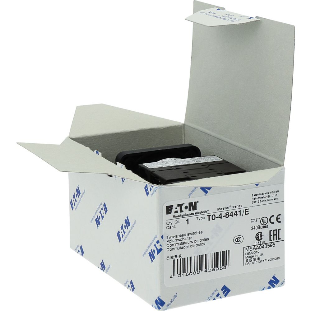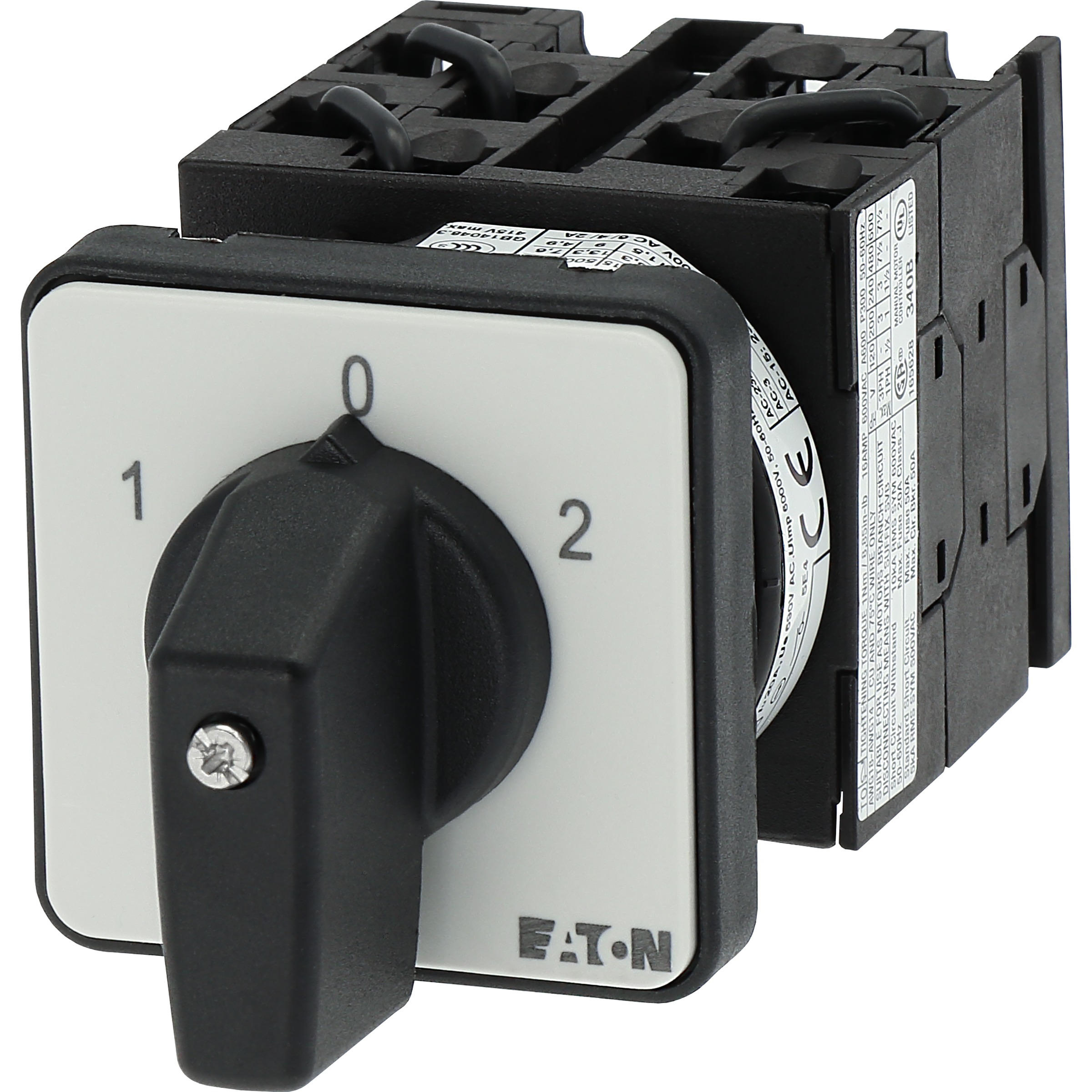 T0-4-8441/E Przełącznik liczby biegunów, Styki: 8, 20 A, układ Dahlandera, 2 prędkości, tabliczka: 1-0-2, 60 °, bez samopowrotu, montaż natablicowy, pokrętło czarne bez możliwości blokady
