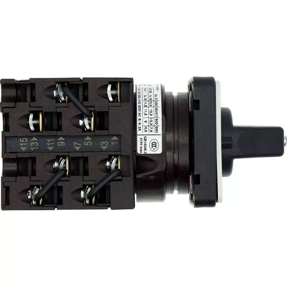 Łącznik krzywkowy wg IEC/EN60947, wielkość konstrukcyjna T0, kształt montażu, tabliczka czołowa 48X48, klasa ochrony na przedzie IP65 z czarnym pokrętłem, pomiarowy prąd stały Iu 20A, znamionowe napięcie pracy Ue 690V, dostępne akcesoria zgodnie z danymi katalogu łączników krzywkowych T. Konstrukcja ogólna: obudowa natynkowa z izolacją, montaż, montaż centralny, montaż pośredni montaż rozdzielacza IVS.
