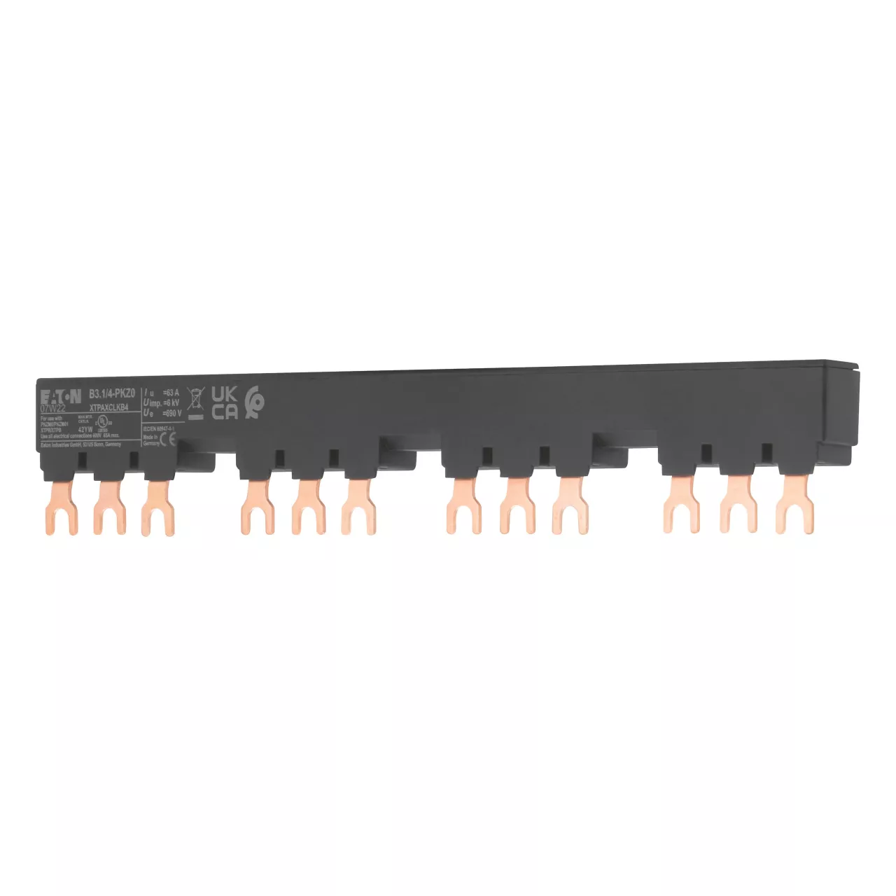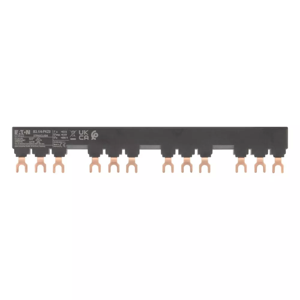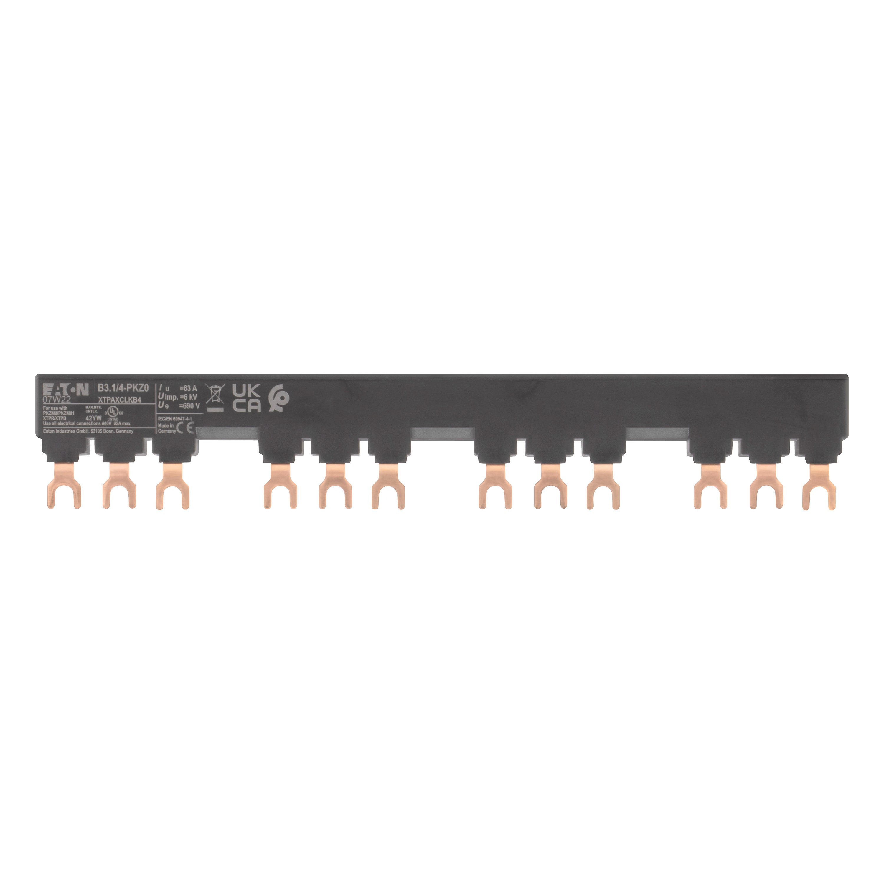 Blok mostków trójfazowych 3 biegunowy do zasilania 4 PKZM0-... z przymocowanymi po prawej stronie łącznikami pomocniczymi lub sygnalizatorami wyzwolenia, długość 207mm, z zabezpieczeniem przed dotykaniem, Ue = 690 V, Iu = 63 A