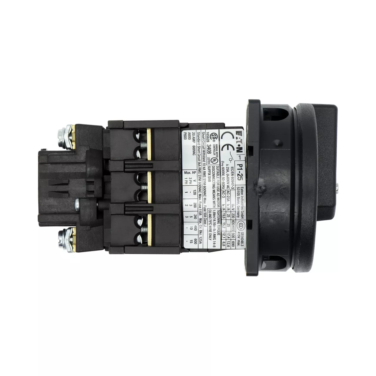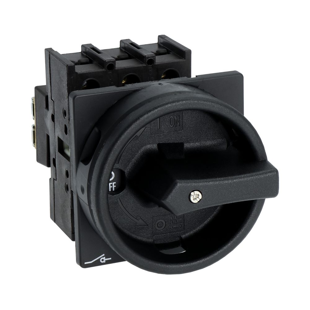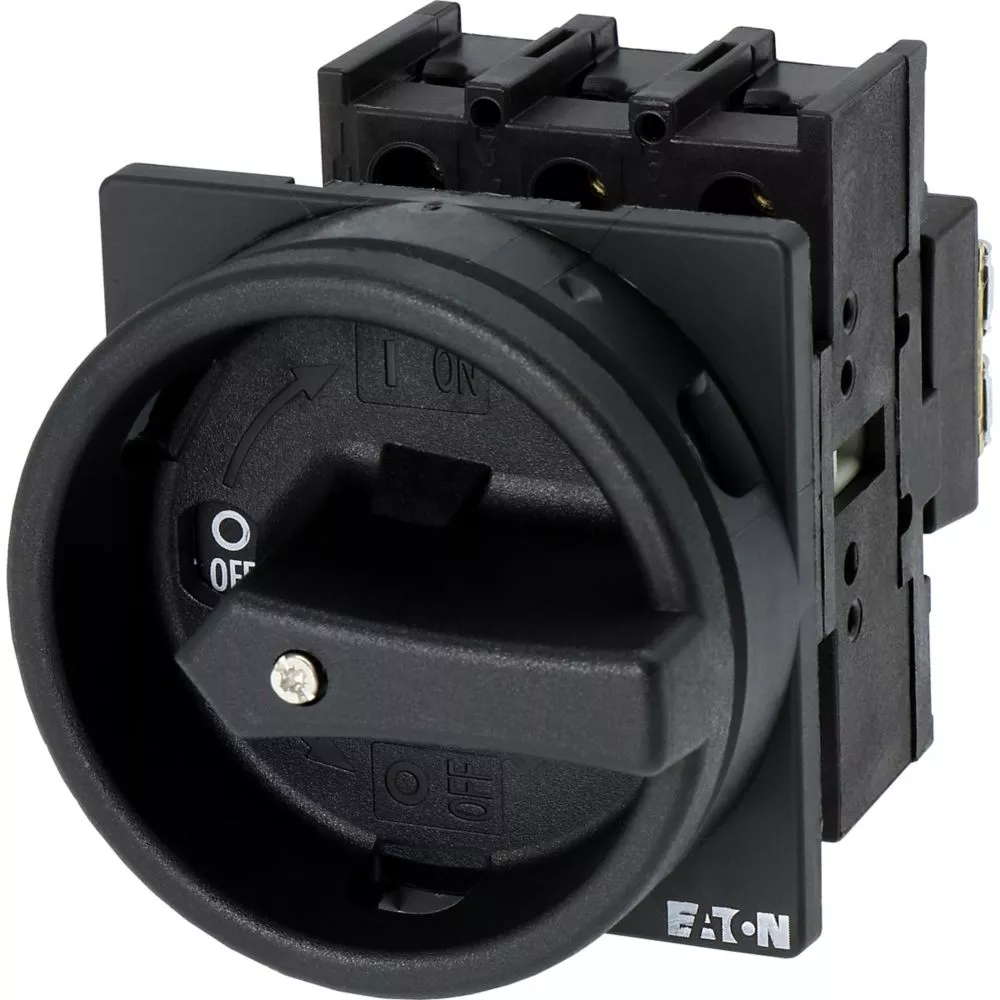 Rozłącznik główny / rozłącznik izolacyjny wł./wył. wg IEC/EN 60947-3, 690V/25A, klasa ochrony przód IP65, rękojeść czarna z wieńcem blokującym czarnym, zamykanie 3 kłódkami, rozłączniki izolacyjne P1 mają niewielkie wymiary i solidną konstrukcję. Napęd ręczny działa bezpośrednio na zestyki. Zestyki po wyłączeniu rozwierają się w sposób wymuszony.. Ogólne konstrukcje: obudowa natynkowa z izolacją, montaż, montaż centralny, montaż pośredni, montaż rozdzielacza IVS