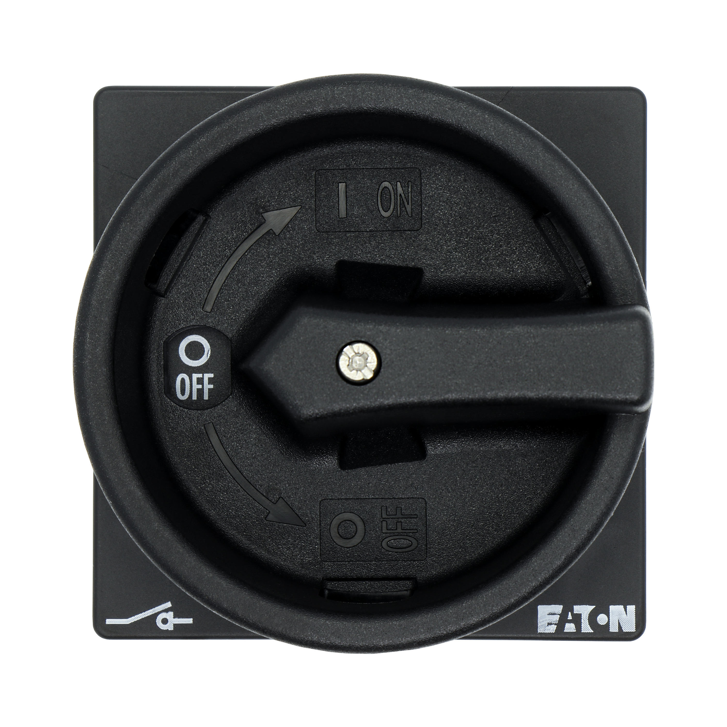 P1-25/EA/SVB-SW Rozłącznik główny, 3 bieg., 25 A, funkcja awaryjnego zatrzymania , blok. na kłódkę w pozycji Wył., montaż natablicowy, pokrętło czarne z blokadą na kłódkę