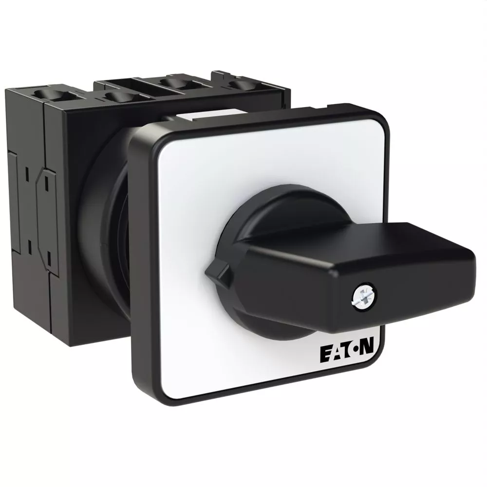 Łącznik krzywkowy wg IEC/EN60947, wielkość konstrukcyjna T0, kształt montażu, tabliczka czołowa 48X48, klasa ochrony na przedzie IP65 z czarnym pokrętłem, pomiarowy prąd stały Iu 20A, znamionowe napięcie pracy Ue 690V, dostępne akcesoria zgodnie z danymi katalogu łączników krzywkowych T. Konstrukcja ogólna: obudowa natynkowa z izolacją, montaż, montaż centralny, montaż pośredni montaż rozdzielacza IVS.