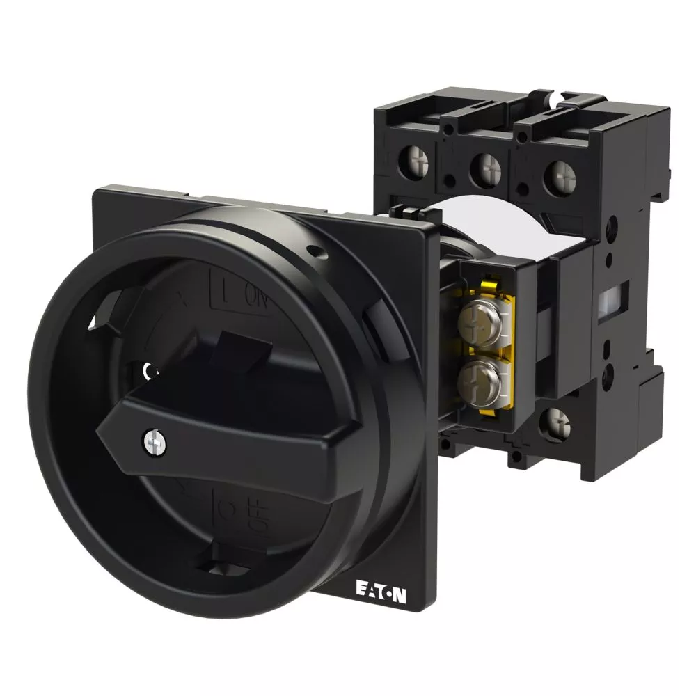 P1-25/V/SVB-SW Rozłącznik główny, 3 bieg., 25 A, funkcja awaryjnego zatrzymania , blok. na kłódkę w pozycji Wył., montaż rozłączny, pokrętło czarny z blokadą na kłódkę