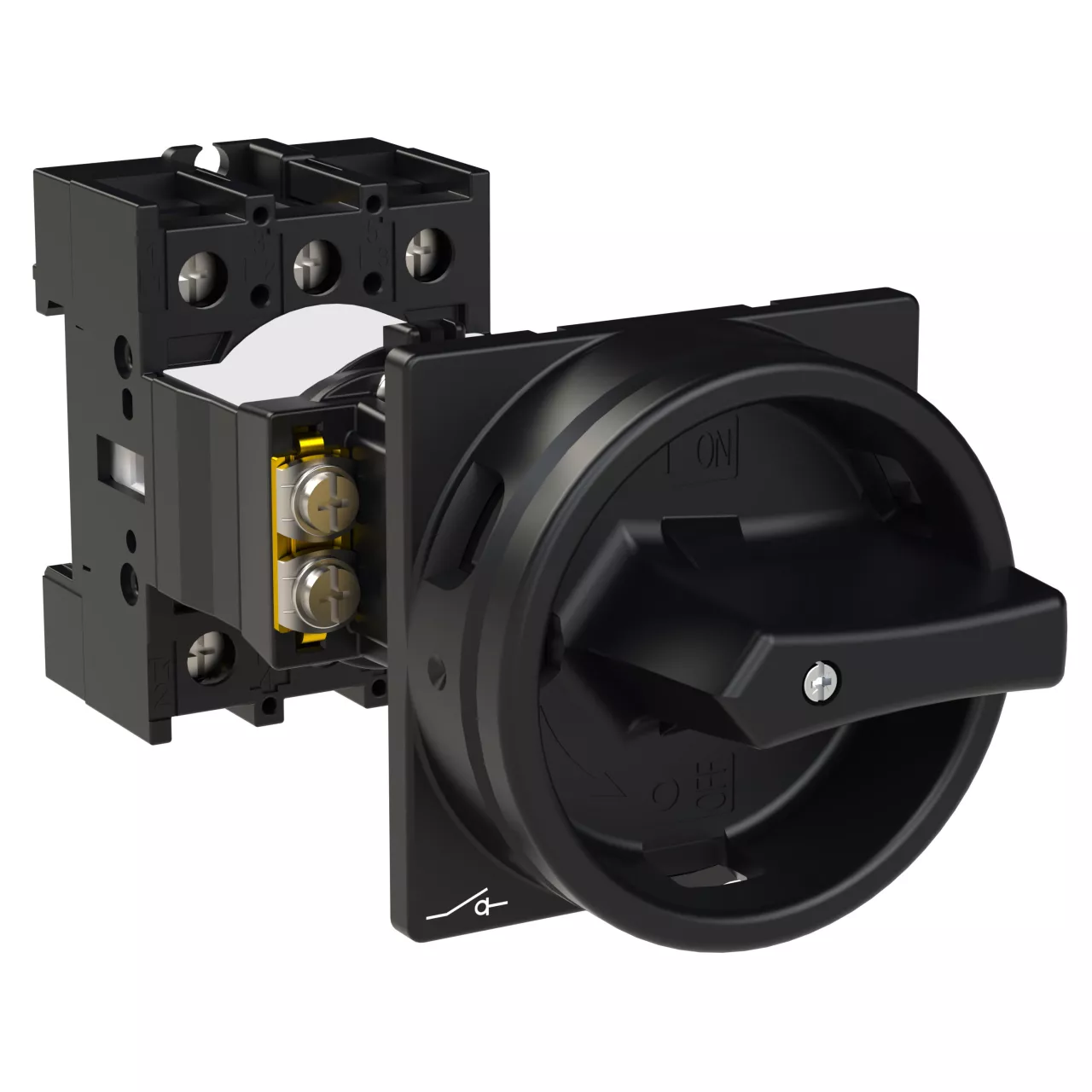Rozłącznik główny / rozłącznik izolacyjny wł./wył. wg IEC/EN 60947-3, 690V/25A, klasa ochrony przód IP65, rękojeść czarna z wieńcem blokującym czarnym, zamykanie 3 kłódkami, rozłączniki izolacyjne P1 mają niewielkie wymiary i solidną konstrukcję. Napęd ręczny działa bezpośrednio na zestyki. Zestyki po wyłączeniu rozwierają się w sposób wymuszony.. Ogólne konstrukcje: obudowa natynkowa z izolacją, montaż, montaż centralny, montaż pośredni, montaż rozdzielacza IVS