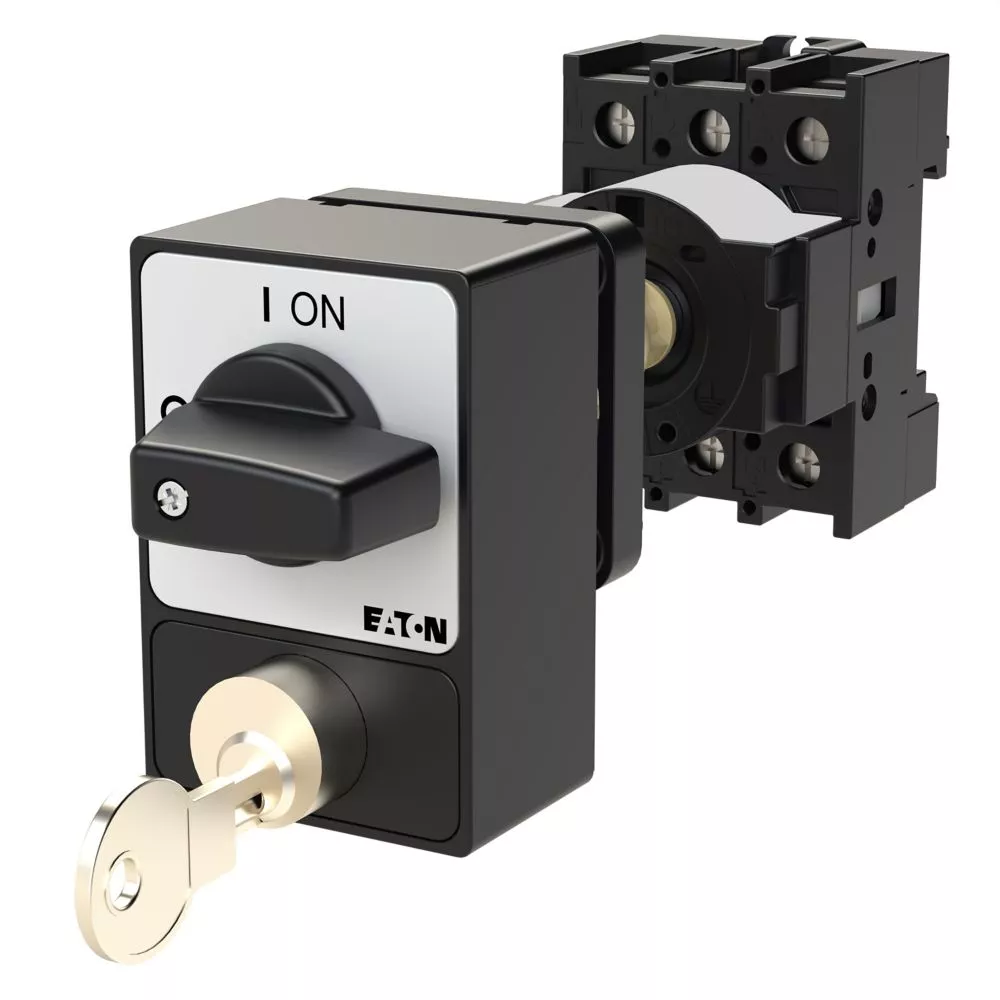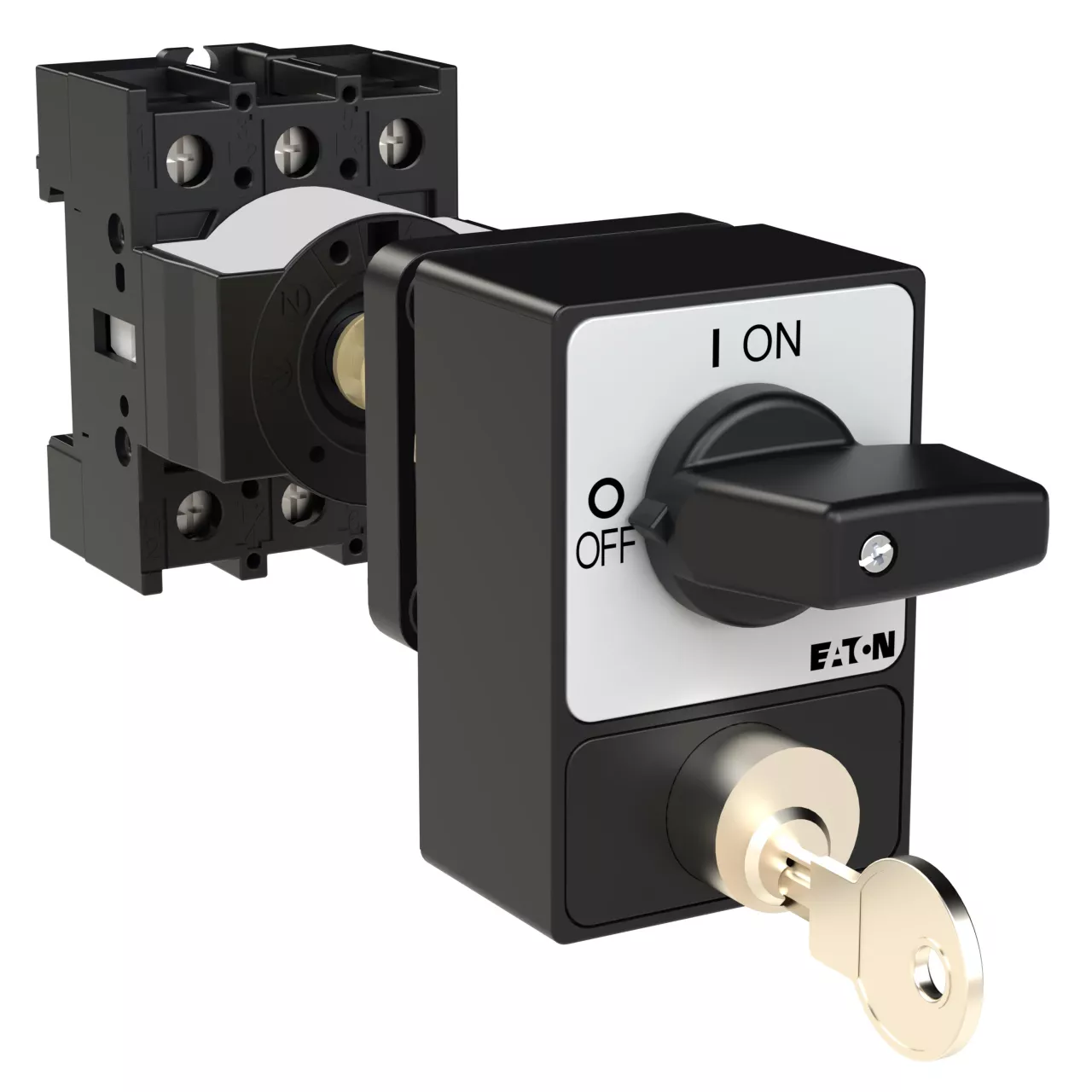P1-25/Z/SVA(A) Przełącznik Zał.-Wył., 3 bieg., 25 A, zamek cylindryczny SVA, montaż rozłączny, pokrętło czarne z zamkiem cylindrycznym