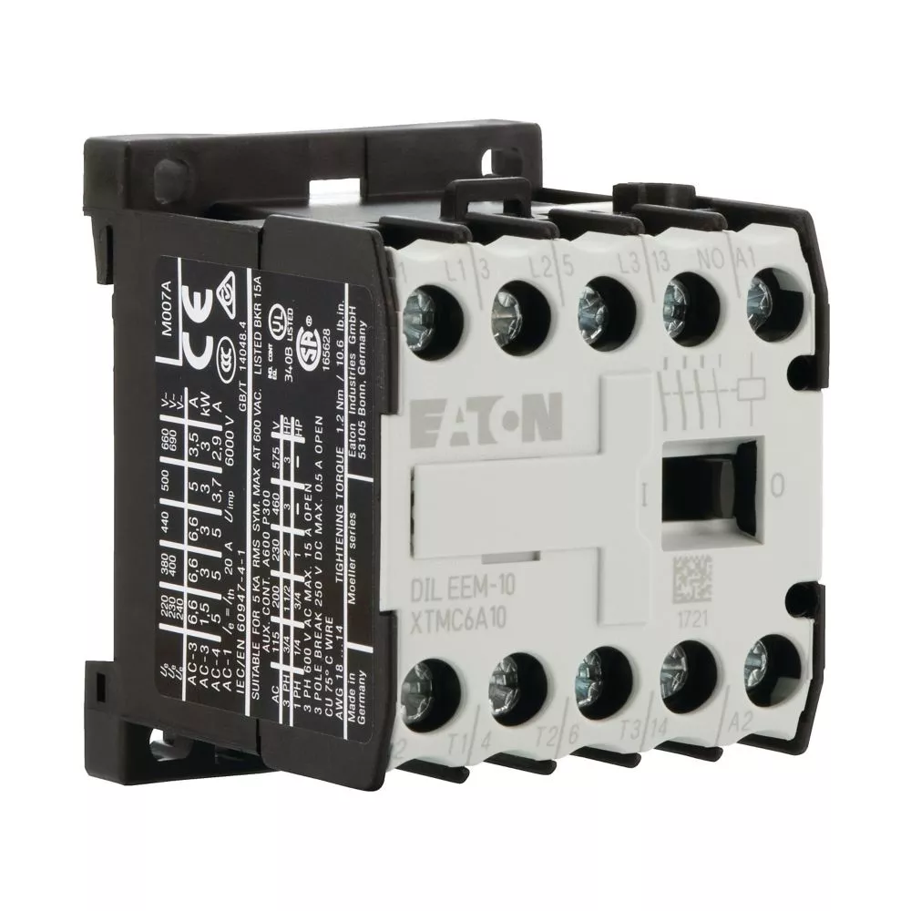 Stycznik mocy, zgodnie z IEC/EN60947, 3-biegunowy, z połączeniami śrubowymi, możliwość rozbudowy o maksymalnie 4 łączników pomocniczych, z 1 łącznikami pomocniczymi jako zestyk wymuszony, zintegrowane połączenie ochronne, mocowanie na śruby i zaciski, ui 690V, stopień ochrony IP20, zabezpieczenie przed dotknięciem zgodnie z VDE 0106 cz. 100, trwałość 10 mln cyklów łączenia mechanicznego, dostępne akcesoria: moduły łączników pomocniczych, układy ochronne, zwory punktu gwiazdowego, łączni równoległy, komplet okablowania, blokada mechaniczna