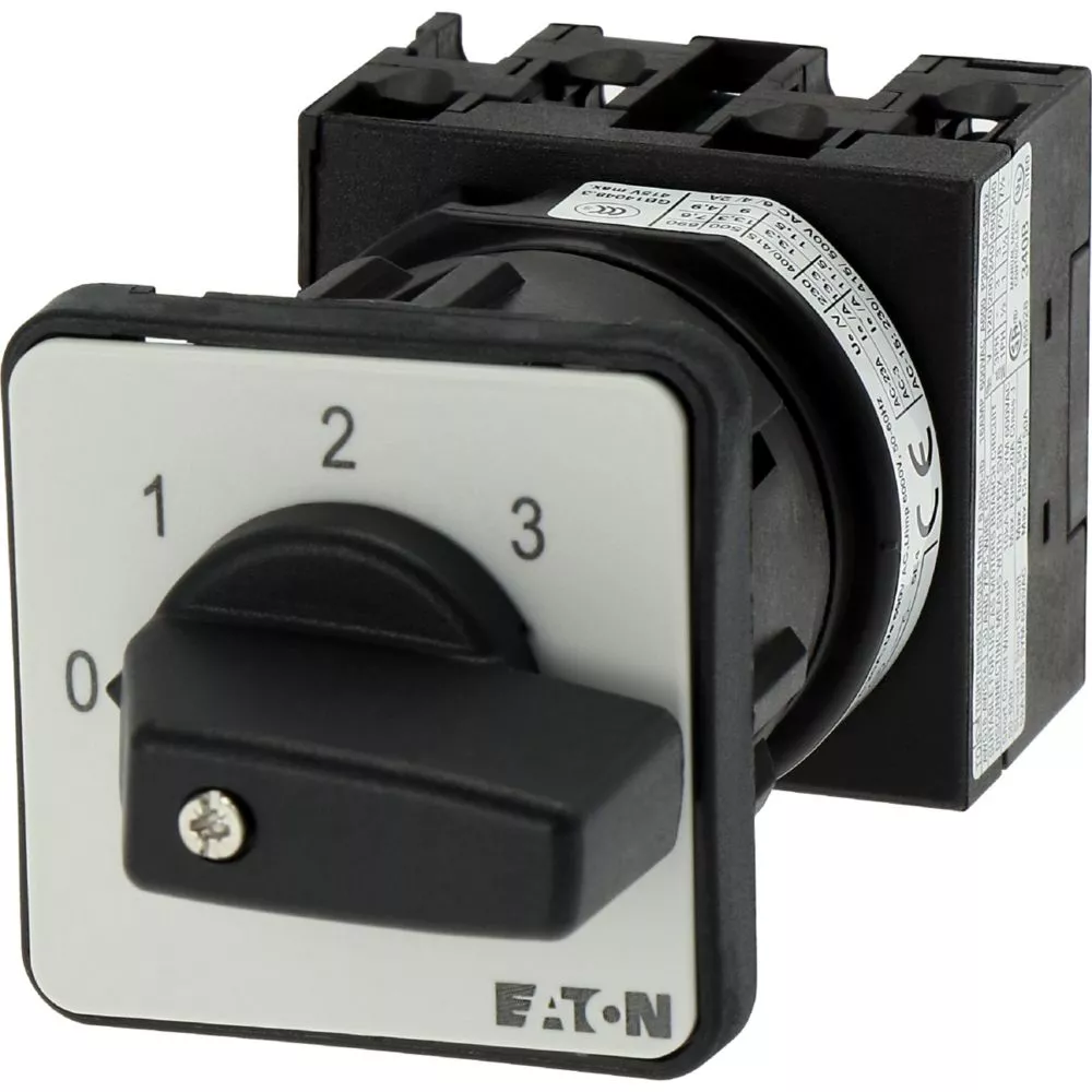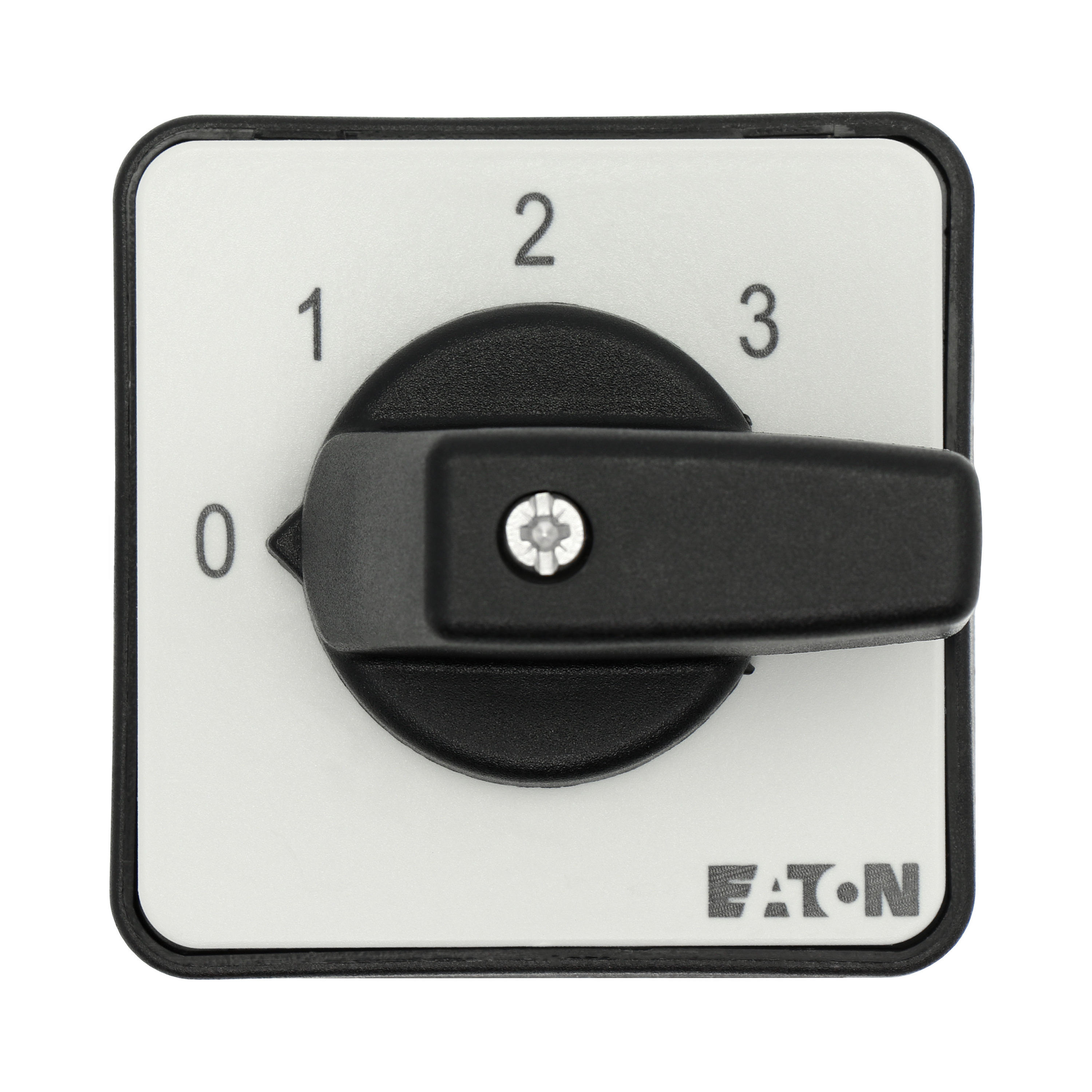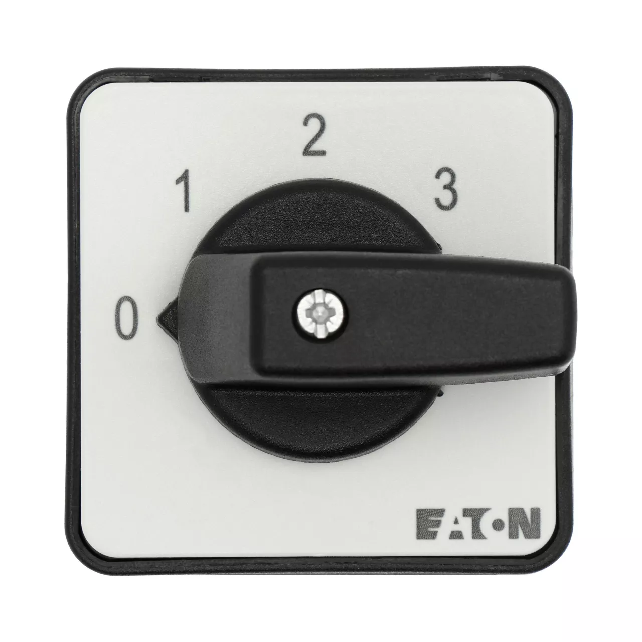 T0-2-8241/EZ Przełącznik krokowy, Styki: 3, 20 A, tabliczka: 0-3, 45 °, 3 kroki, 45°, bez samopowrotu, montaż natablicowy 22,3 mm, pokrętło czarne bez możliwości blokady