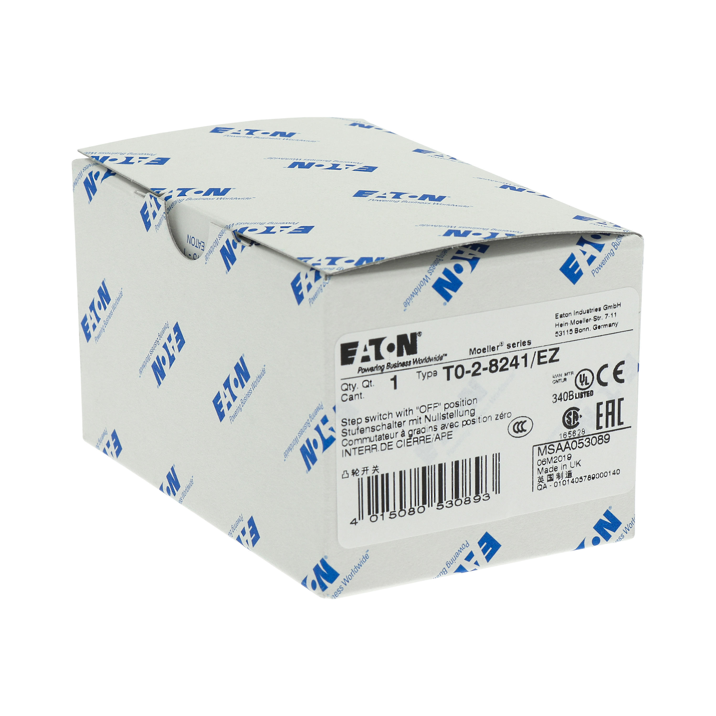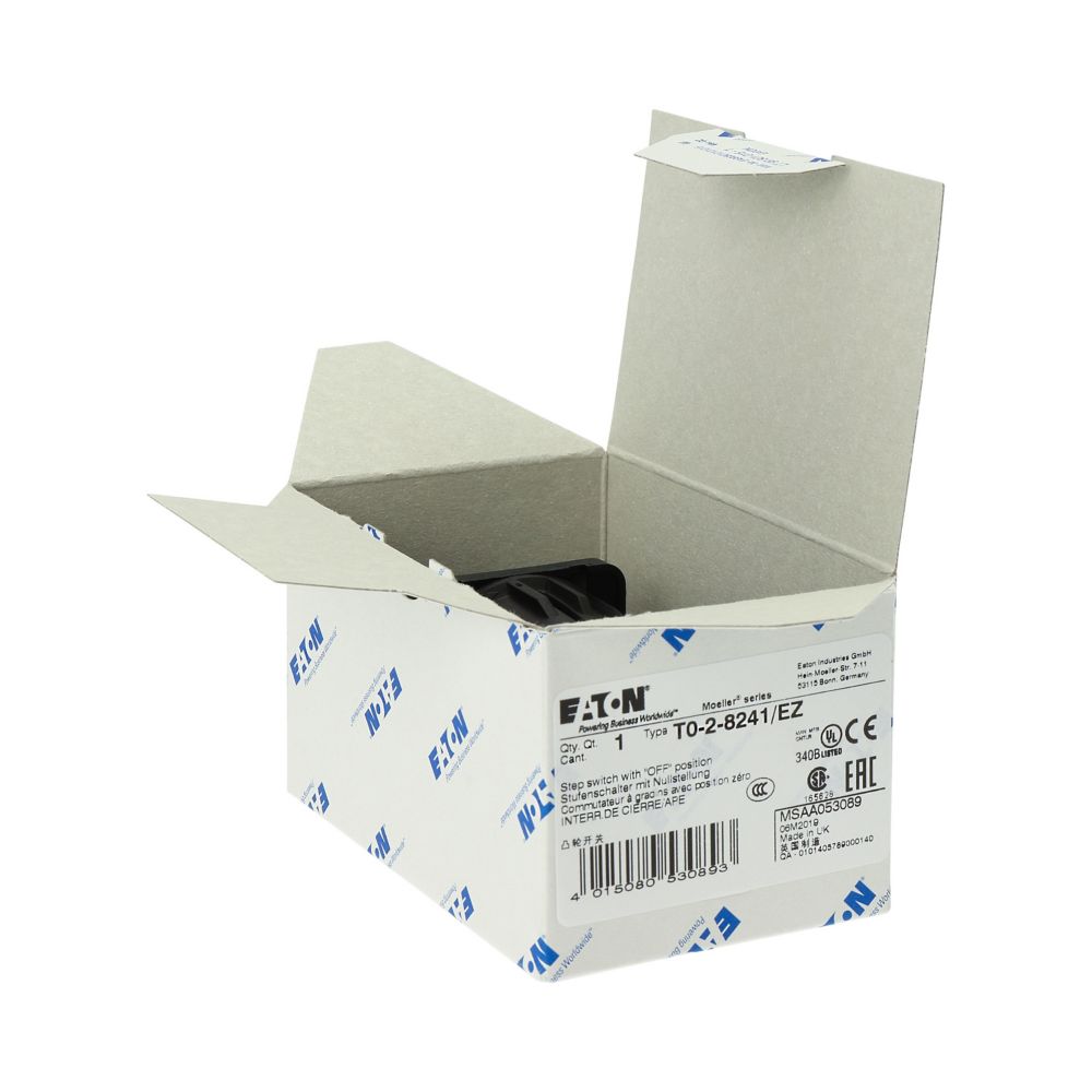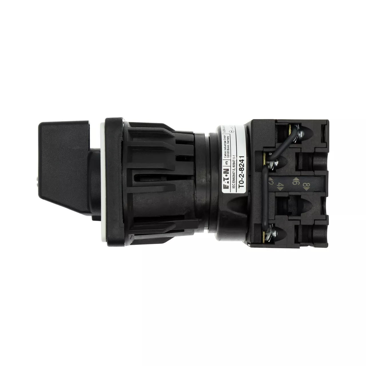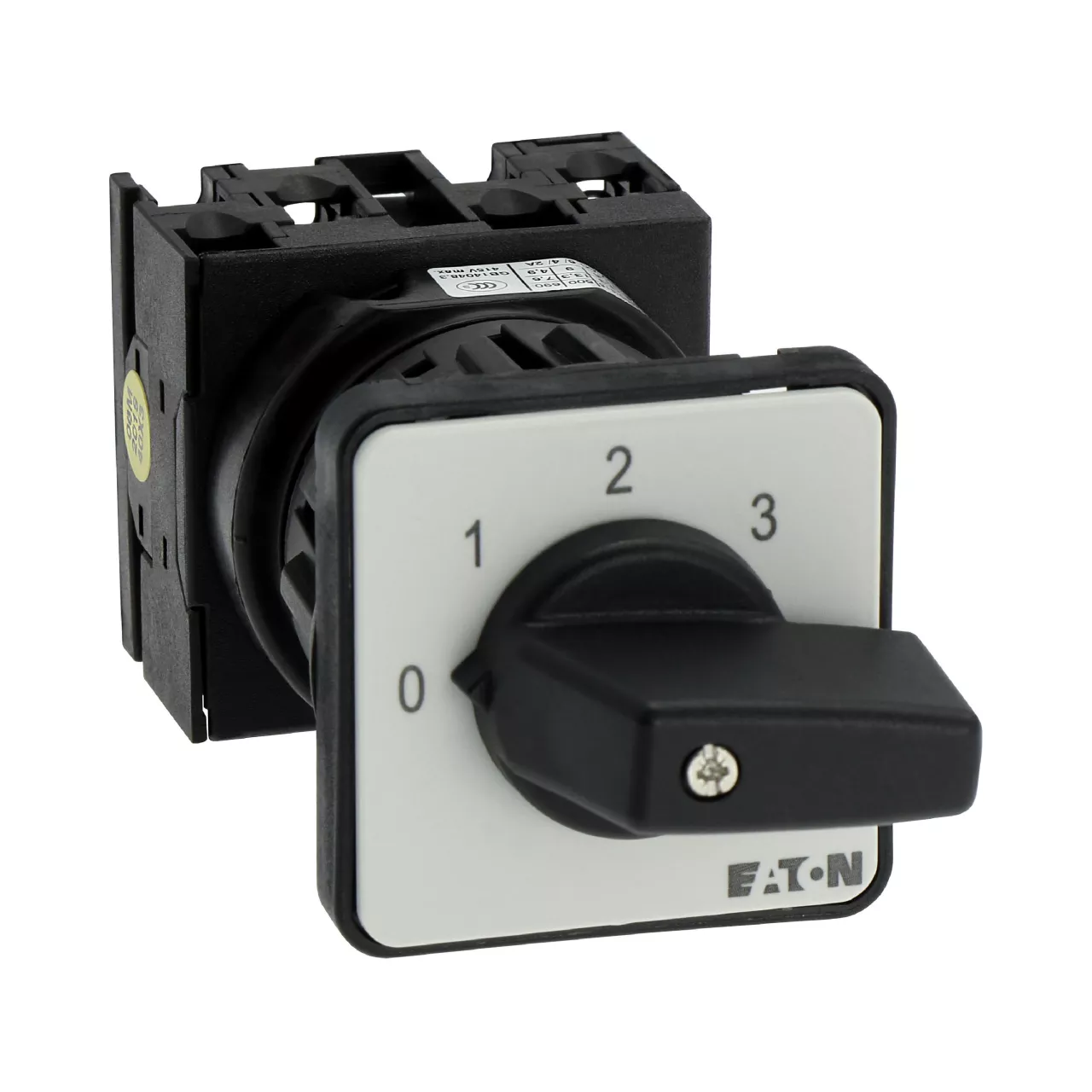 T0-2-8241/EZ Przełącznik krokowy, Styki: 3, 20 A, tabliczka: 0-3, 45 °, 3 kroki, 45°, bez samopowrotu, montaż natablicowy 22,3 mm, pokrętło czarne bez możliwości blokady
