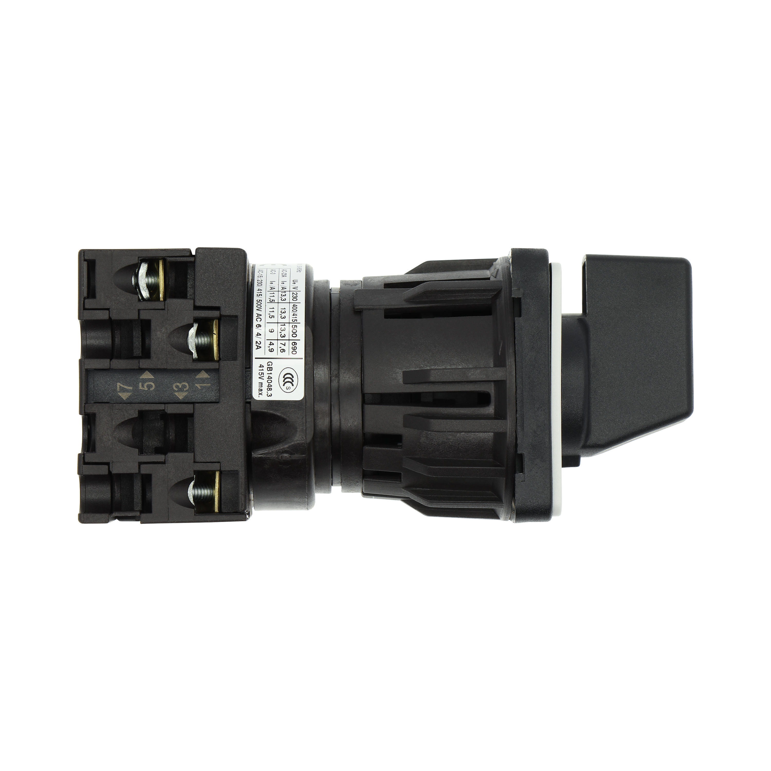 Łącznik krzywkowy wg IEC/EN60947, wielkość konstrukcyjna T0, otwór mocujący o kształcie do montażu centralnego 22,3 mm, tabliczka czołowa 48X48, klasa ochrony na przedzie IP65 z czarnym pokrętłem, pomiarowy prąd stały Iu 20A, znamionowe napięcie pracy Ue 690V, dostępne akcesoria zgodnie z danymi katalogu łączników krzywkowych T. Konstrukcja ogólna: obudowa natynkowa z izolacją, montaż, montaż centralny, montaż pośredni montaż rozdzielacza IVS.