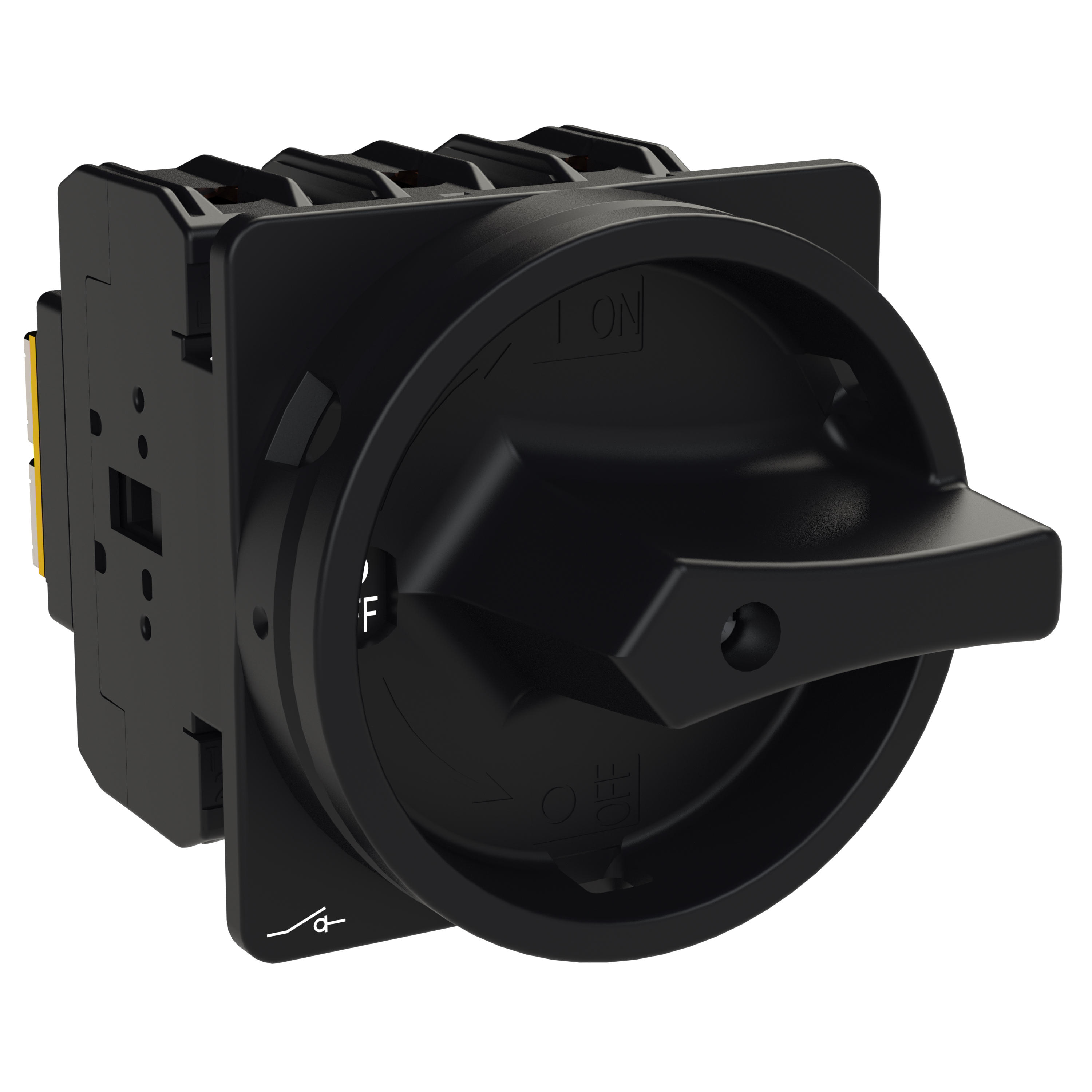 Rozłącznik główny / rozłącznik izolacyjny wł./wył. wg IEC/EN 60947-3, 690V/63A, klasa ochrony przód IP65, rękojeść czarna z wieńcem blokującym czarnym zamykana 3 kłódkami, rozłączniki izolacyjne P3 mają niewielkie wymiary i solidną konstrukcję. Napęd ręczny działa bezpośrednio na zestyki. Zestyki po wyłączeniu rozwierają się w sposób wymuszony.. Ogólne konstrukcje: obudowa natynkowa z izolacją, montaż, montaż pośredni, montaż rozdzielacza IVS