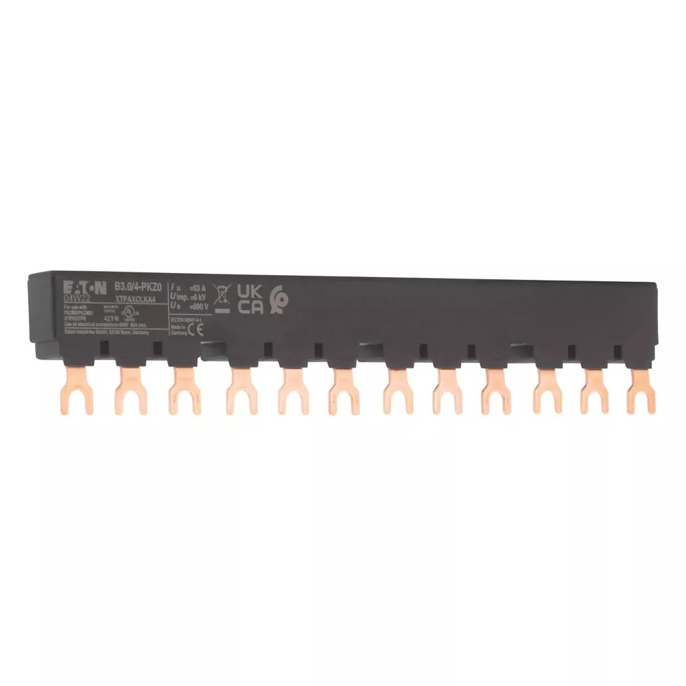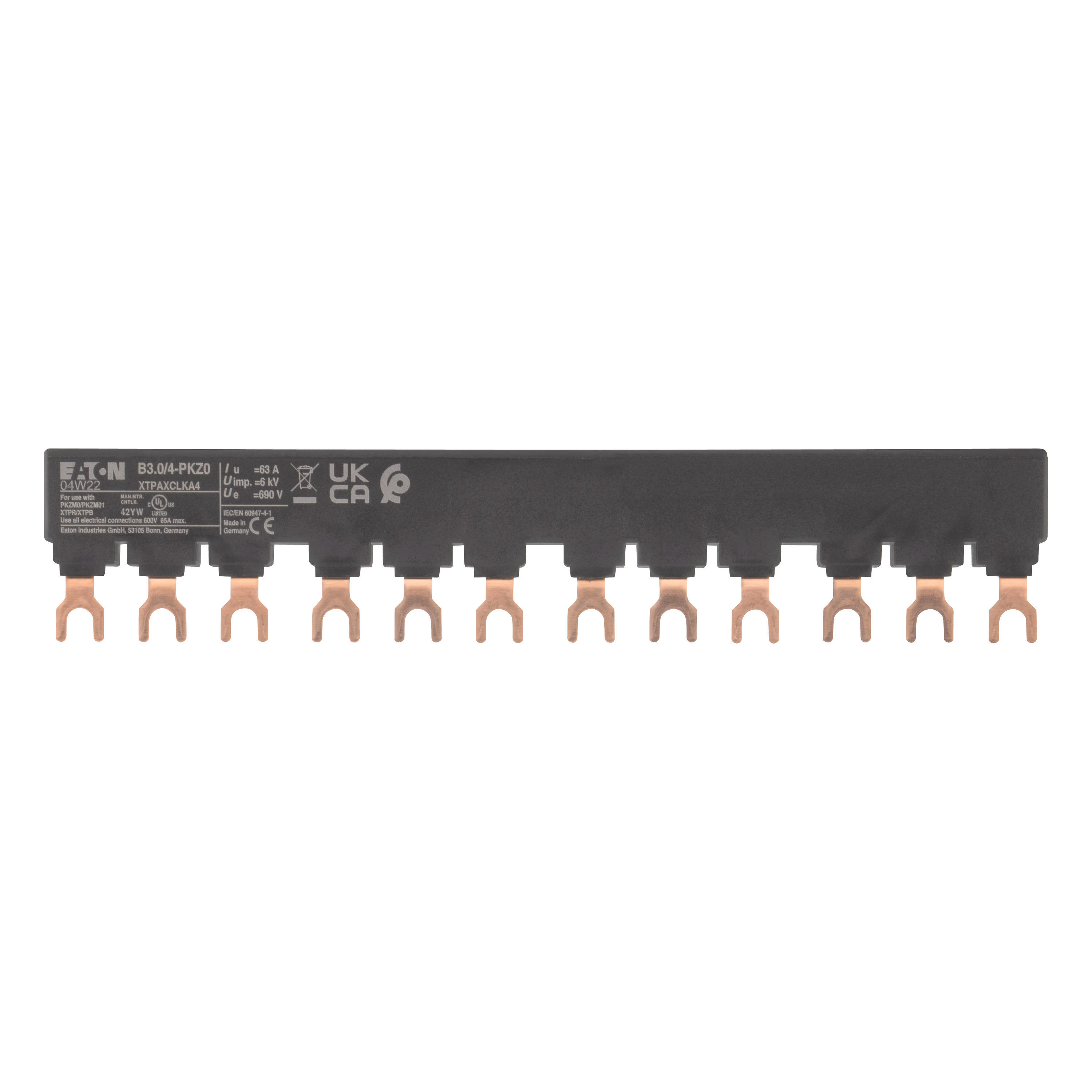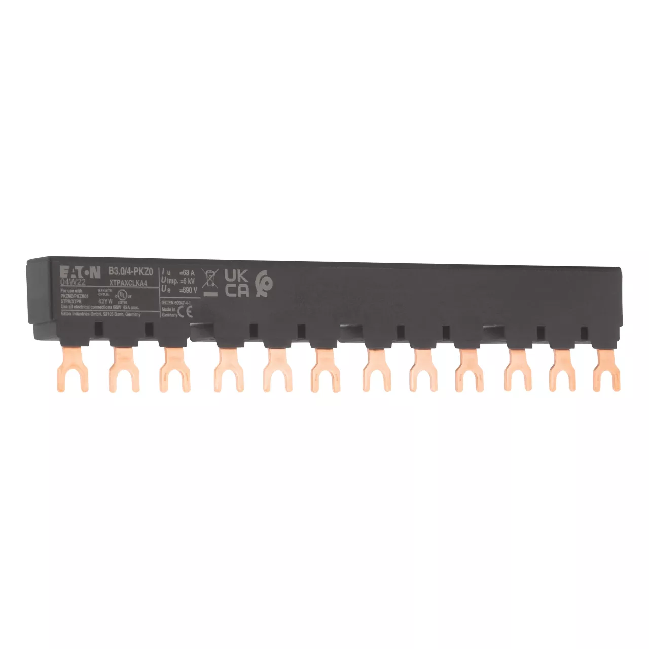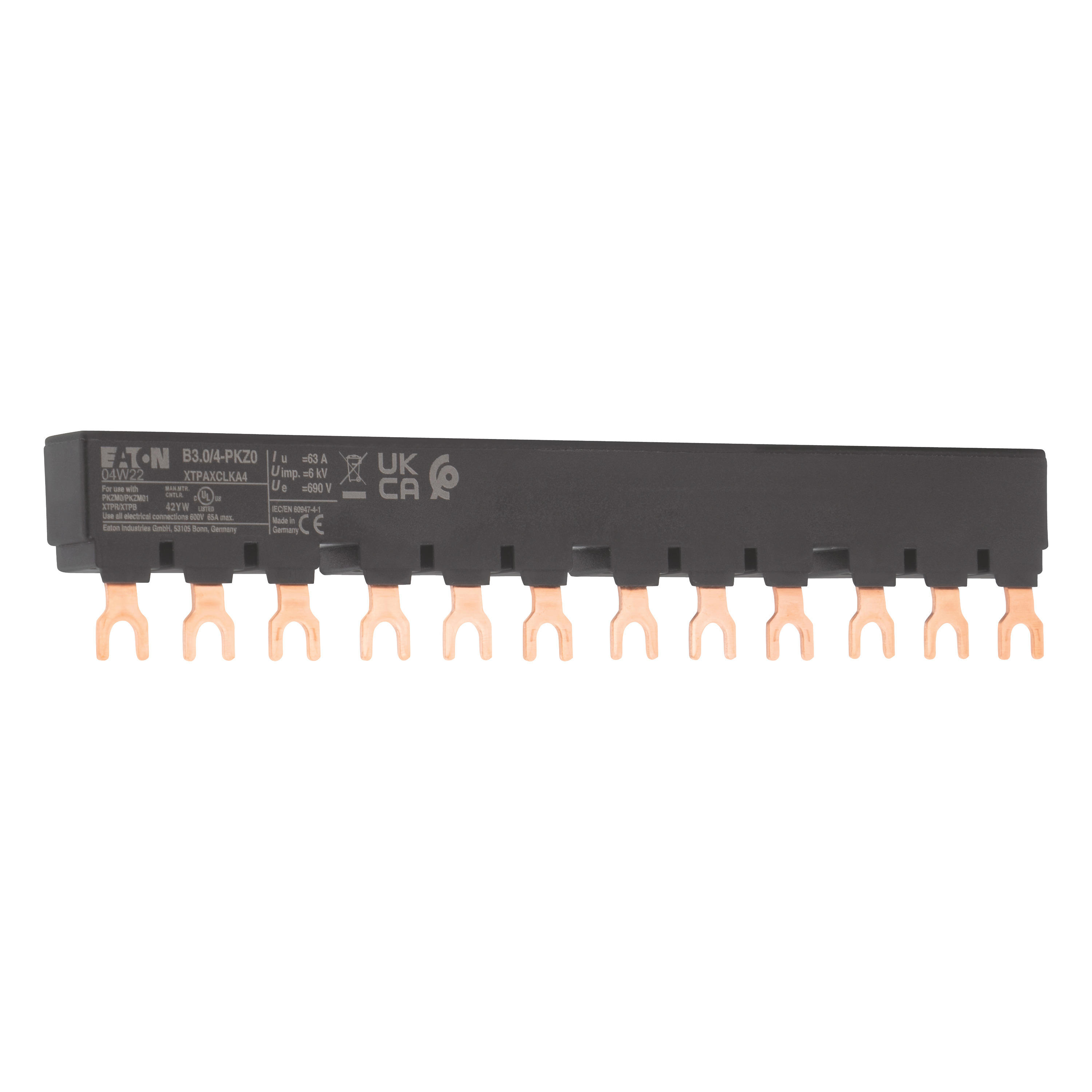 Blok mostków trójfazowych 3 biegunowy do zasilania 4 PKZM0-... bez przymocowanych z boku łączników pomocniczych lub sygnalizatora wyzwolenia, możliwość przedłużania poprzez odwrócony montaż, długość 180mm, z zabezpieczeniem przed dotykaniem, Ue = 690 V, Iu = 63 A