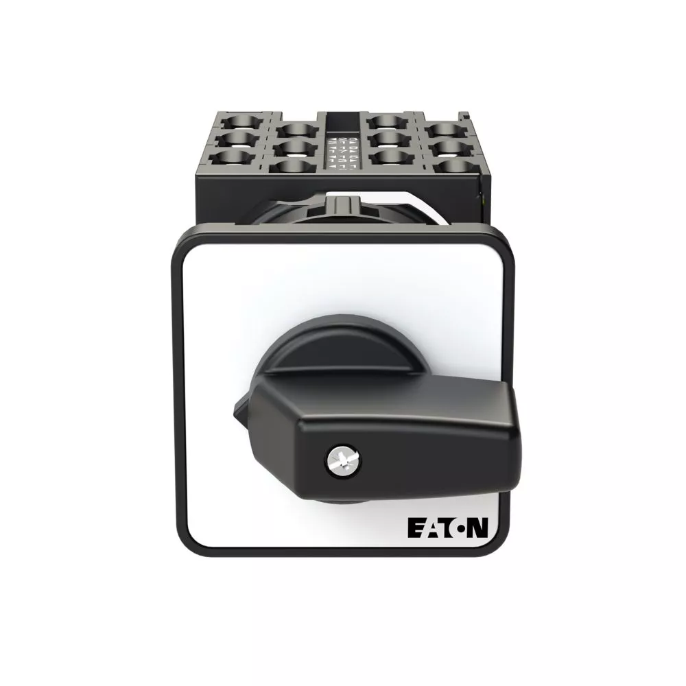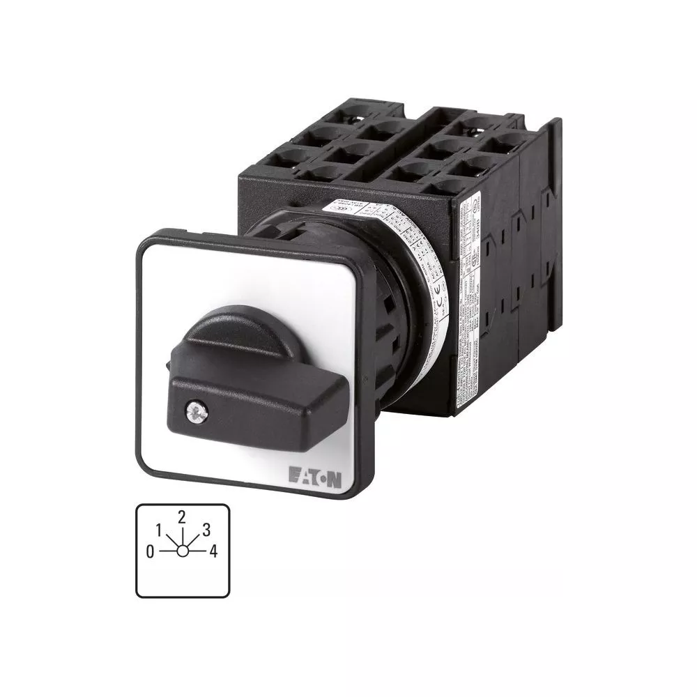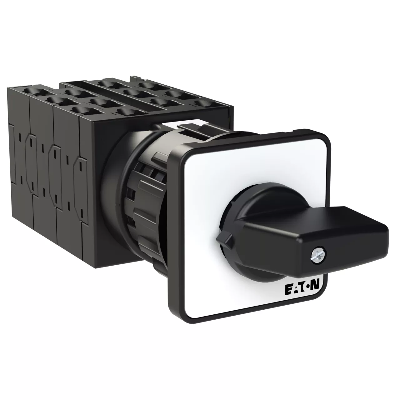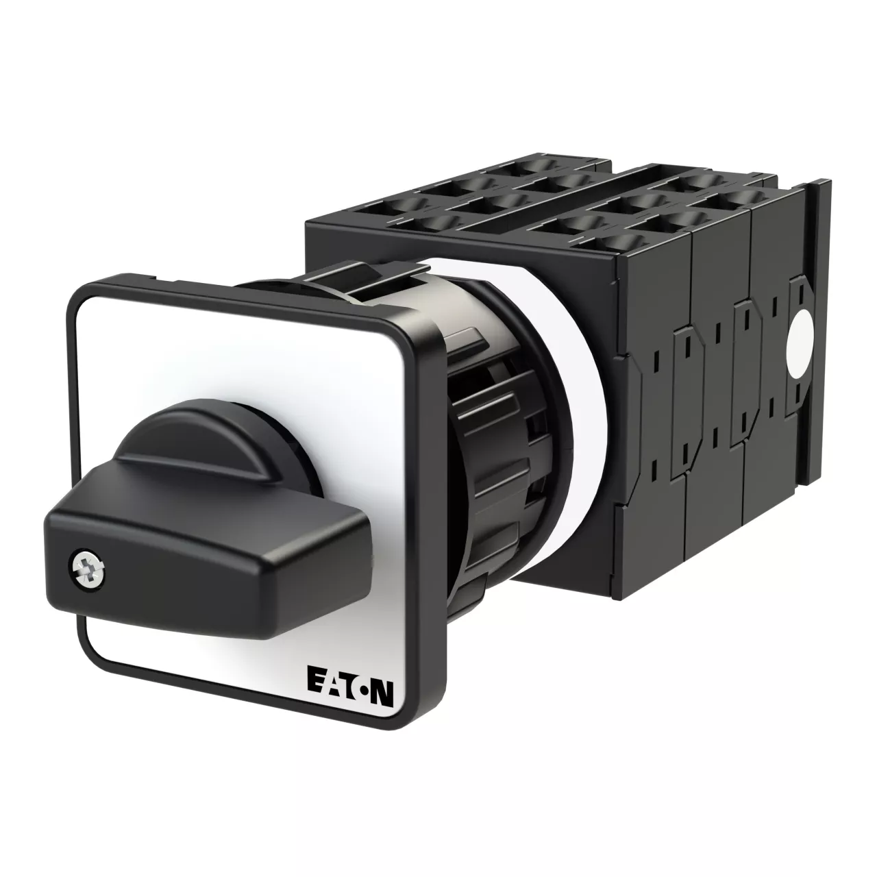 Łącznik krzywkowy wg IEC/EN60947, wielkość konstrukcyjna T0, otwór mocujący o kształcie do montażu centralnego 22,3 mm, tabliczka czołowa 48X48, klasa ochrony na przedzie IP65 z czarnym pokrętłem, pomiarowy prąd stały Iu 20A, znamionowe napięcie pracy Ue 690V, dostępne akcesoria zgodnie z danymi katalogu łączników krzywkowych T. Konstrukcja ogólna: obudowa natynkowa z izolacją, montaż, montaż centralny, montaż pośredni montaż rozdzielacza IVS.