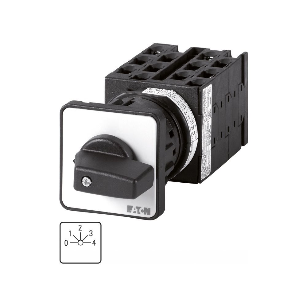 T0-6-8282/EZ Przełącznik krokowy, Styki: 12, 20 A, tabliczka: 0-4, 45 °, 4 kroki, 45°, bez samopowrotu, montaż natablicowy 22,3 mm, pokrętło czarne bez możliwości blokady