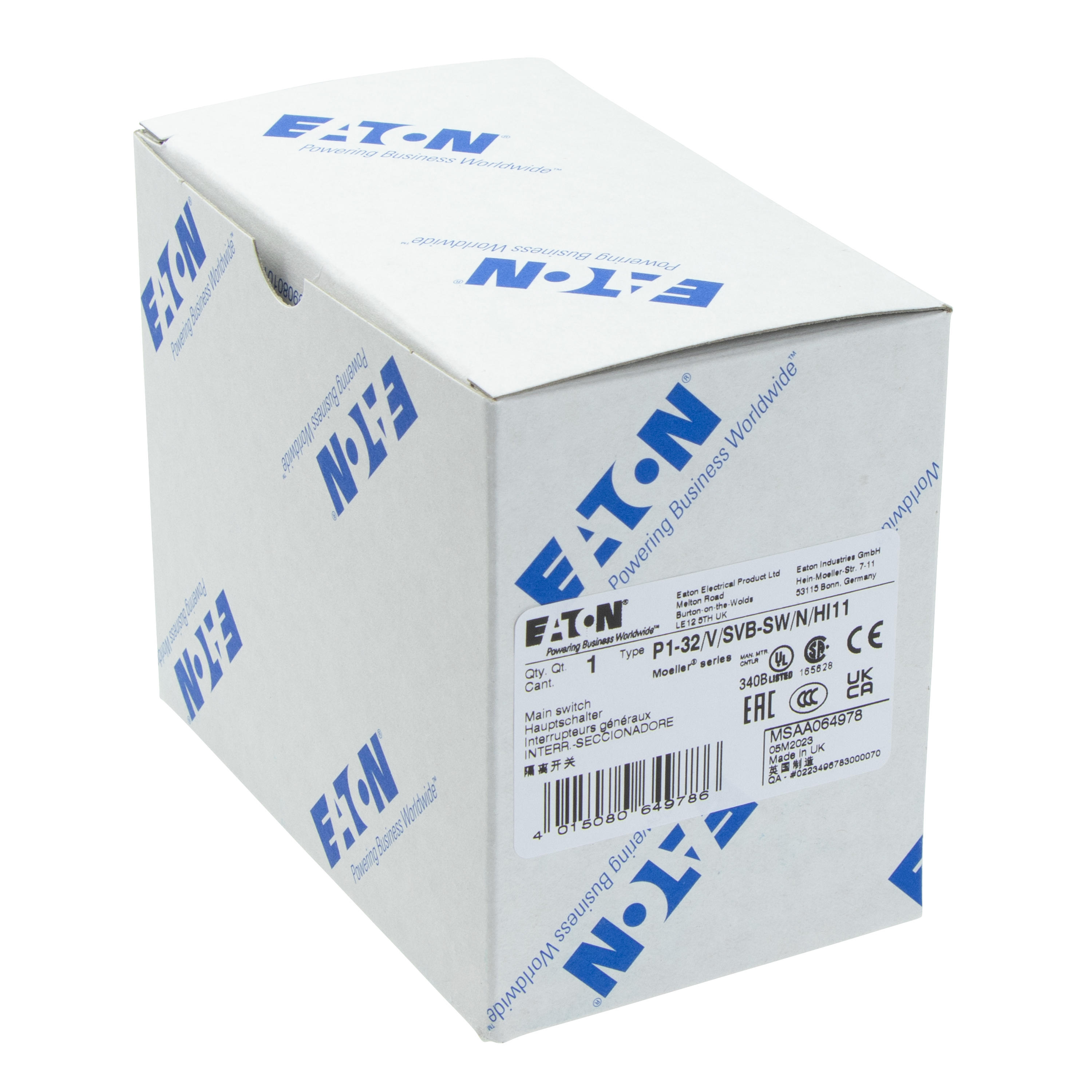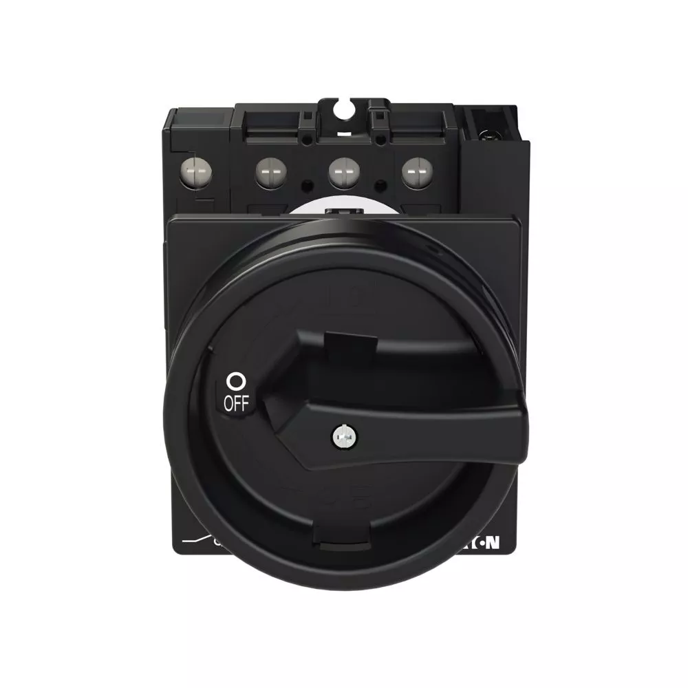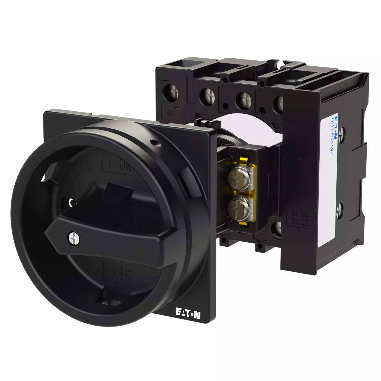 Rozłącznik główny / rozłącznik izolacyjny wł./wył. wg IEC/EN 60947-3, 690V/32A, klasa ochrony przód IP65, rękojeść czarna z wieńcem blokującym czarnym, zamykanie 3 kłódkami, rozłączniki izolacyjne P1 mają niewielkie wymiary i solidną konstrukcję. Napęd ręczny działa bezpośrednio na zestyki. Zestyki po wyłączeniu rozwierają się w sposób wymuszony.. Ogólne konstrukcje: obudowa natynkowa z izolacją, montaż, montaż centralny, montaż pośredni, montaż rozdzielacza IVS