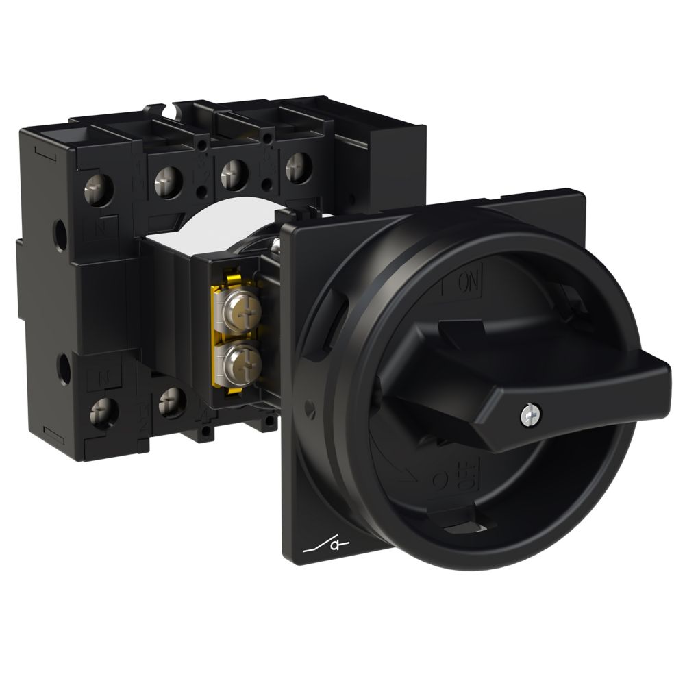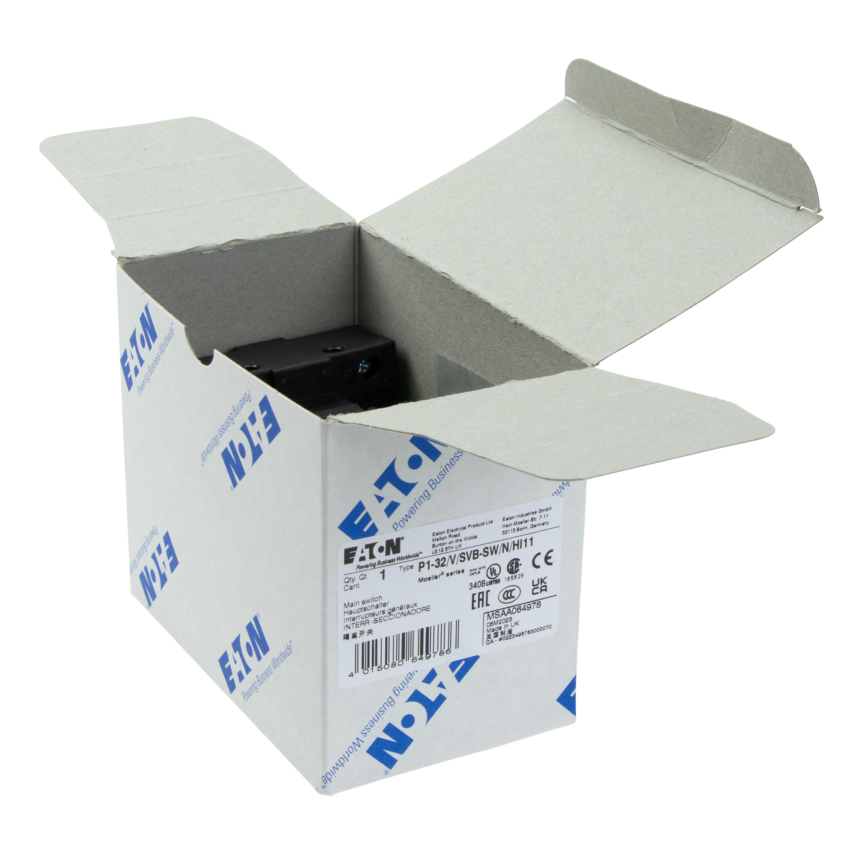P1-32/V/SVB-SW/N/HI11 Rozłącznik główny, 3 bieg. + N + 1 NO + 1 NC, 32 A, funkcja awaryjnego zatrzymania , blok. na kłódkę w pozycji Wył., montaż rozłączny, pokrętło czarne z blokadą na kłódkę