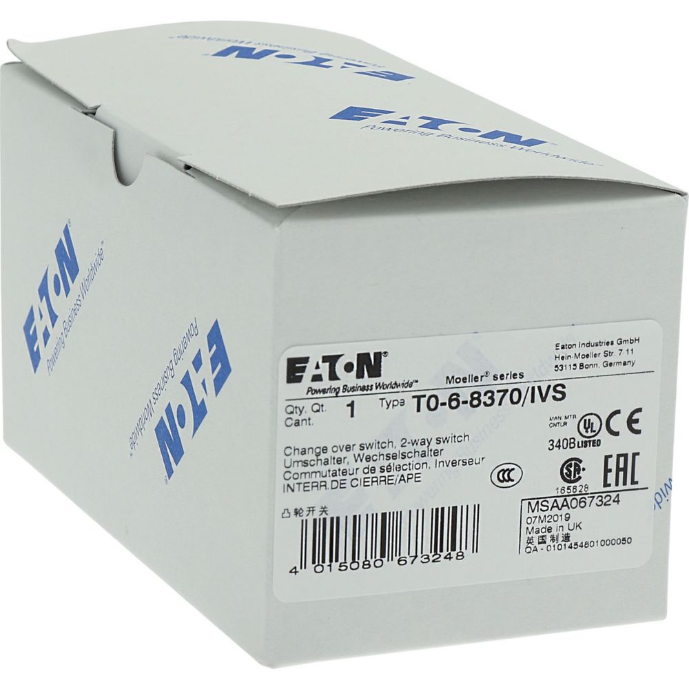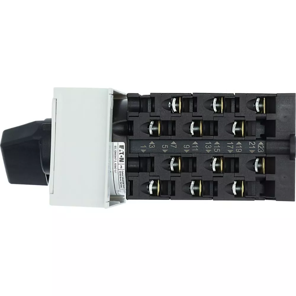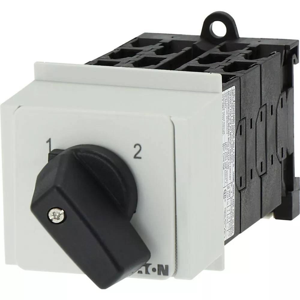 Łącznik krzywkowy wg IEC/EN60947, wielkość konstrukcyjna T0, konstrukcja rozdzielacza, wymiary montażowe zgodne z DIN 43 880, mocowanie na szynie uniwersalnej, klasa ochrony na przedzie IP30 z czarnym pokrętłem, pomiarowy prąd stały Iu 20A, znamionowe napięcie pracy Ue 690V, dostępne akcesoria zgodnie z danymi katalogu łączników krzywkowych T. Konstrukcja ogólna: obudowa natynkowa z izolacją, montaż, montaż centralny, montaż pośredni montaż rozdzielacza IVS.