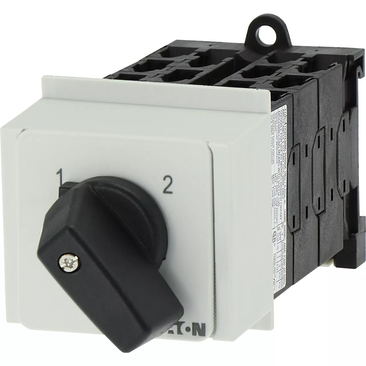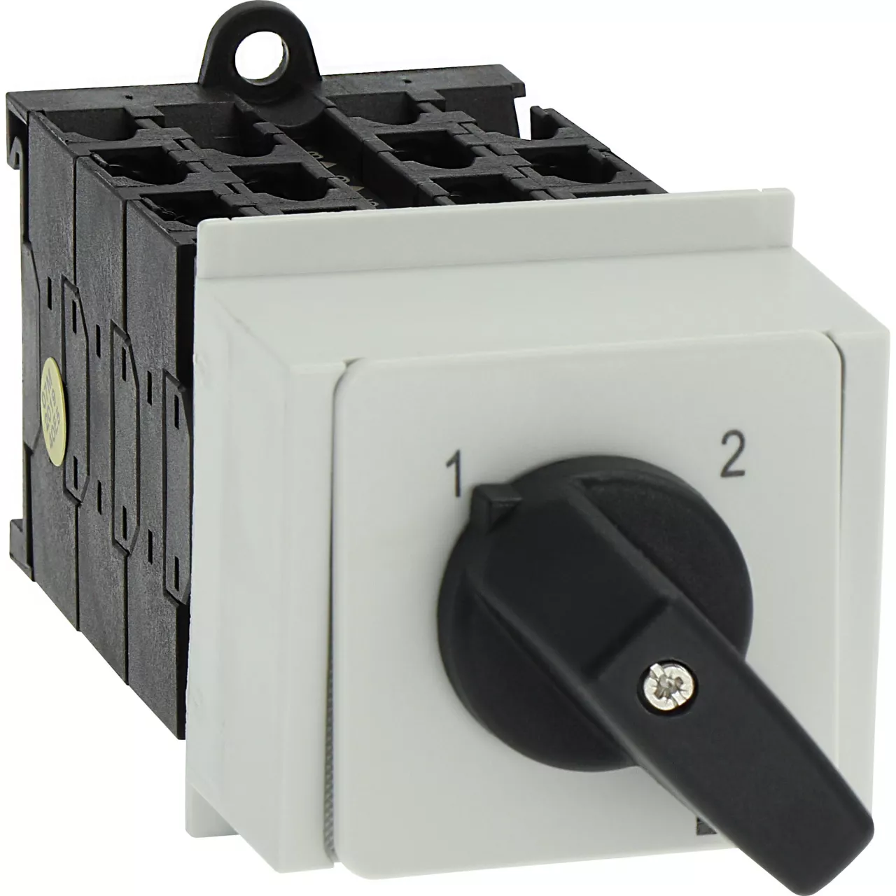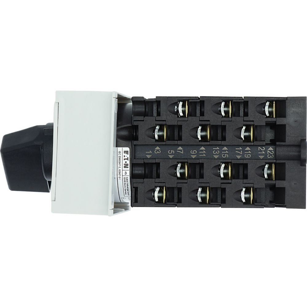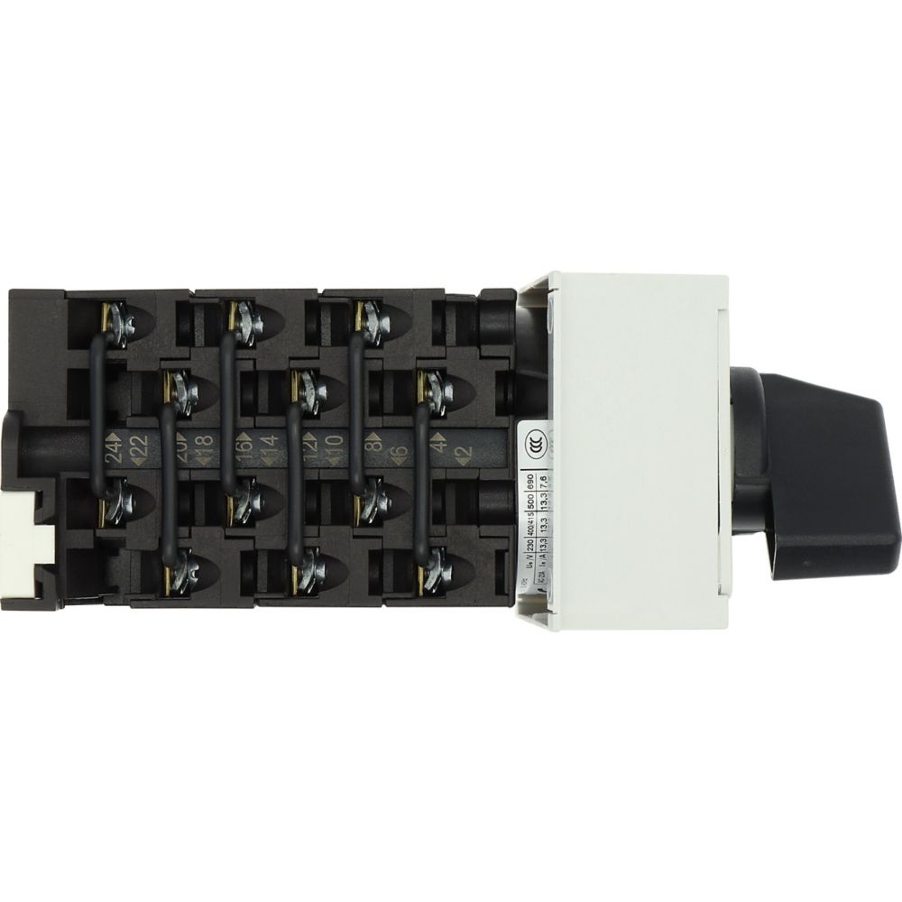 T0-6-8370/IVS Przełącznik zasilania, Styki: 12, 20 A, tabliczka: 1-2, 90 °, bez samopowrotu, montaż na szynę TH, pokrętło czarne bez możliwości blokady