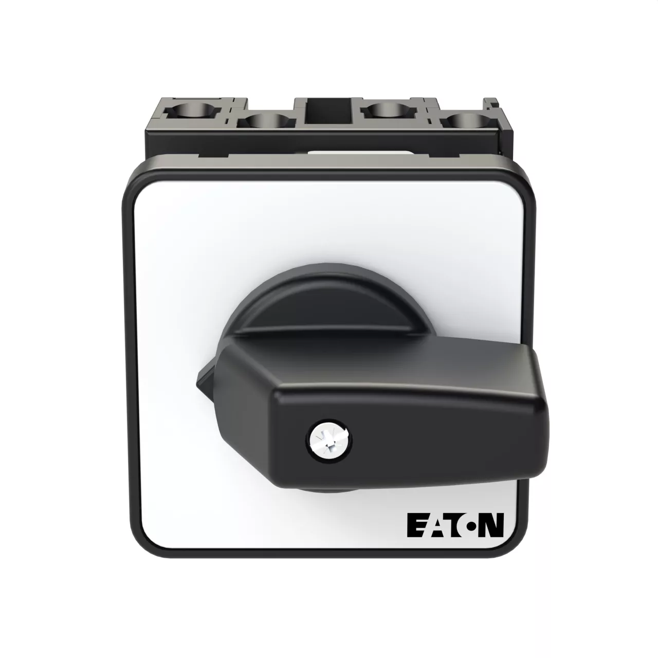Łącznik krzywkowy wg IEC/EN60947, wielkość konstrukcyjna T0, kształt montażu, tabliczka czołowa 48X48, klasa ochrony na przedzie IP65 z czarnym pokrętłem, pomiarowy prąd stały Iu 20A, znamionowe napięcie pracy Ue 690V, dostępne akcesoria zgodnie z danymi katalogu łączników krzywkowych T. Konstrukcja ogólna: obudowa natynkowa z izolacją, montaż, montaż centralny, montaż pośredni montaż rozdzielacza IVS.