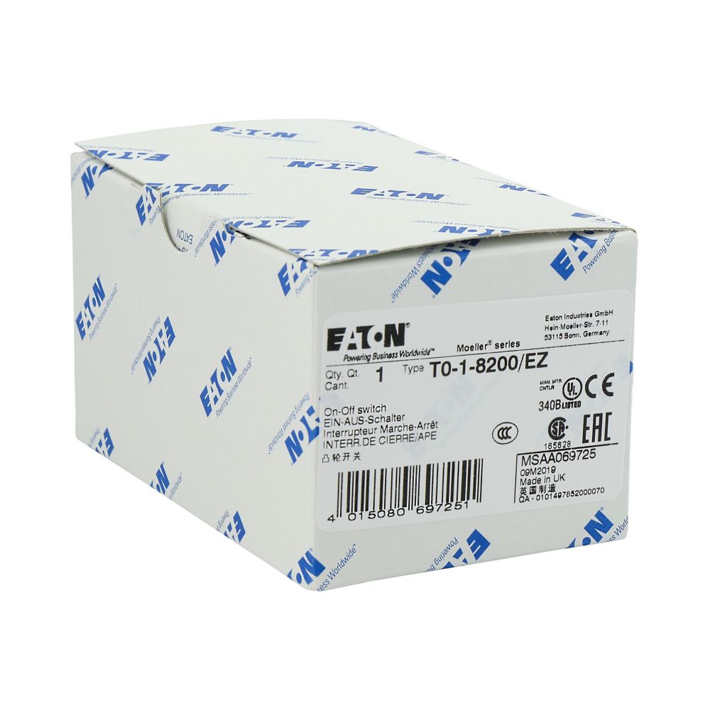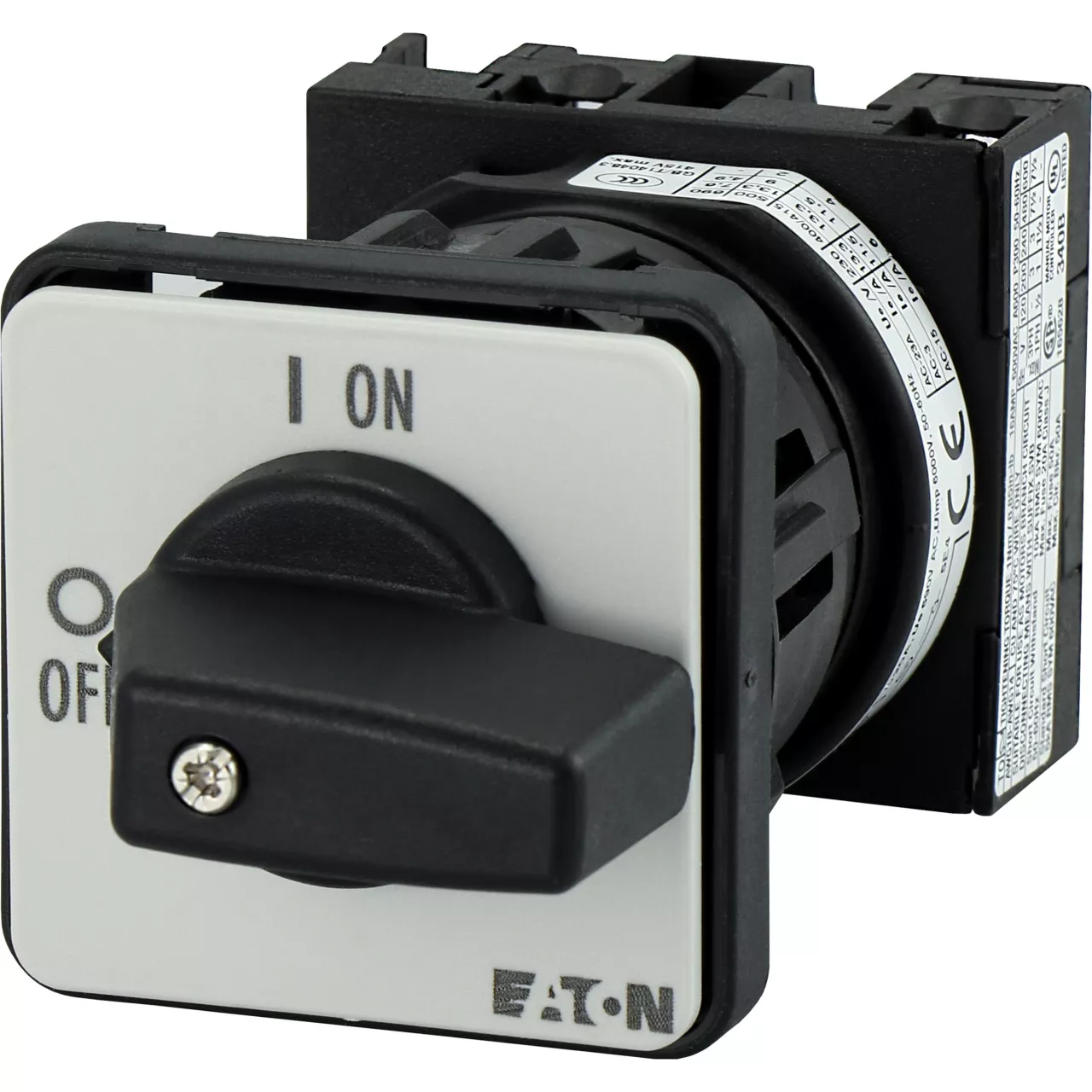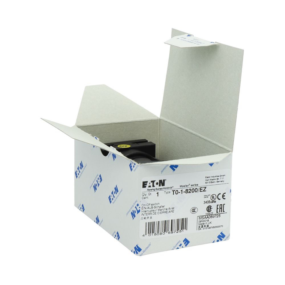 T0-1-8200/EZ Przełącznik Zał.-Wył., 1 bieg., 20 A, 90 °, montaż natablicowy 22,3 mm, pokrętło czarne bez możliwości blokady