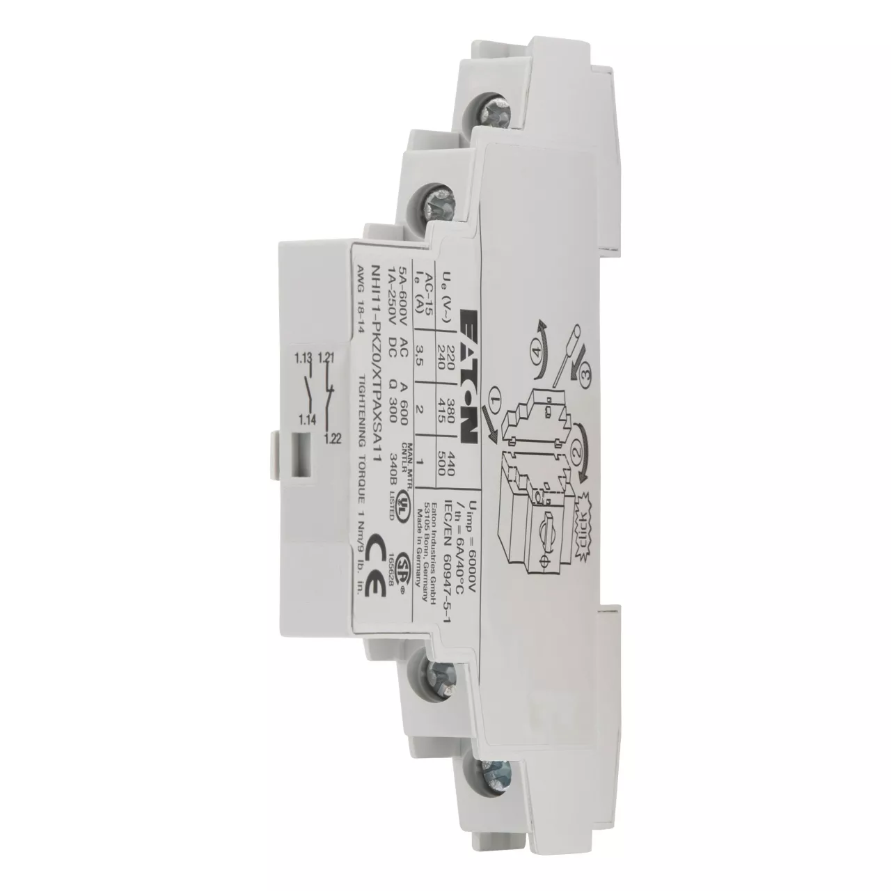 Standardowy styk pomocniczy 1 zz 1zr, Z zaciskami ze śrubą, do wyłącznika ochronnego różnicowego o rozmiarze PKZ(M)0