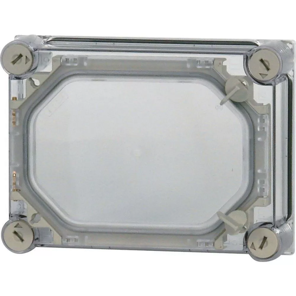 Pokrywa przezroczysta z drzwiami, stopień ochrony IP65, opatentowane zamknięcie pokrywy z wbudowanym wyrównaniem nadciśnienia, plombowane zamknięcia pokrywy, piankowa uszczelka dookoła, głębokość montażu przy płyci montażowej=150mm, zastosowanie do dolnych części CI E, X i V, wersja zamknięć drzwi: obsługa ręczna