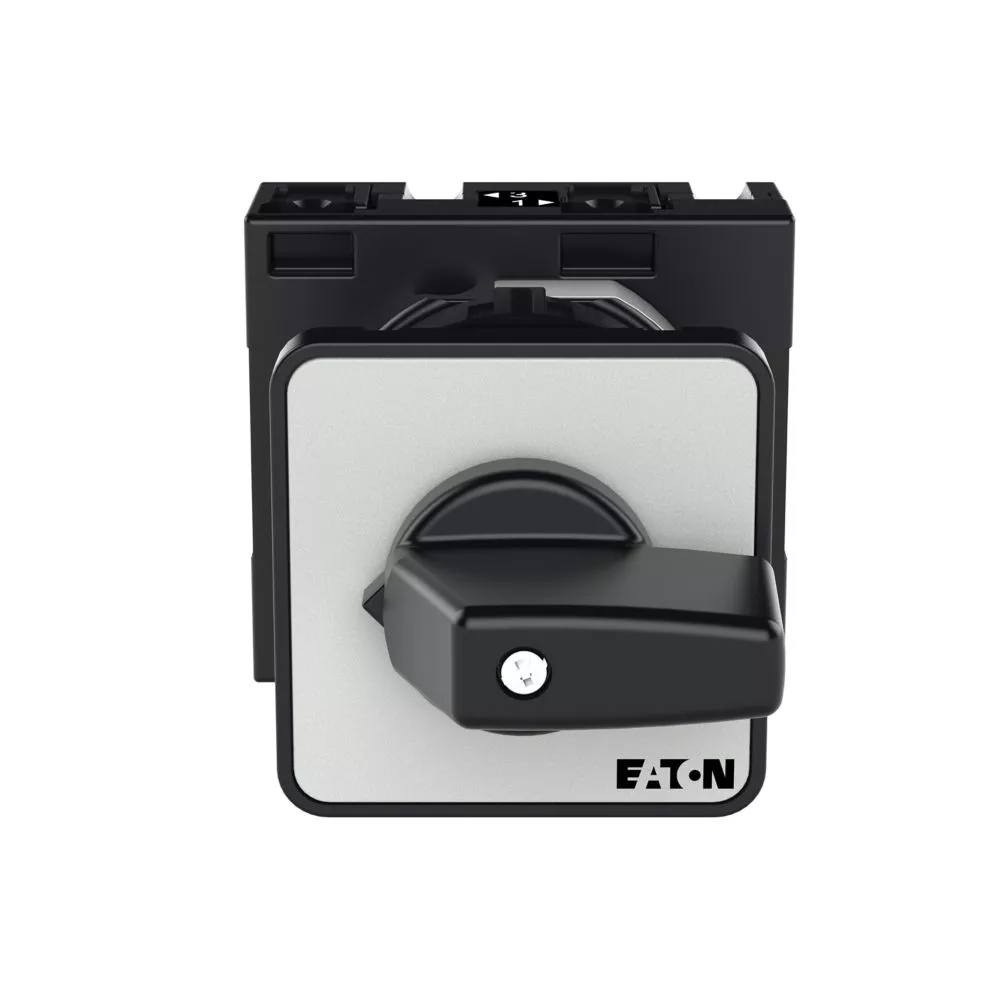 Łącznik krzywkowy wg IEC/EN60947, wielkość konstrukcyjna T3, otwór mocujący o kształcie do montażu centralnego 22,3 mm, tabliczka czołowa 48X48, klasa ochrony na przedzie IP65 z czarnym pokrętłem, pomiarowy prąd stały Iu 32A, znamionowe napięcie pracy Ue 690V, dostępne akcesoria zgodnie z danymi katalogu łączników krzywkowych T