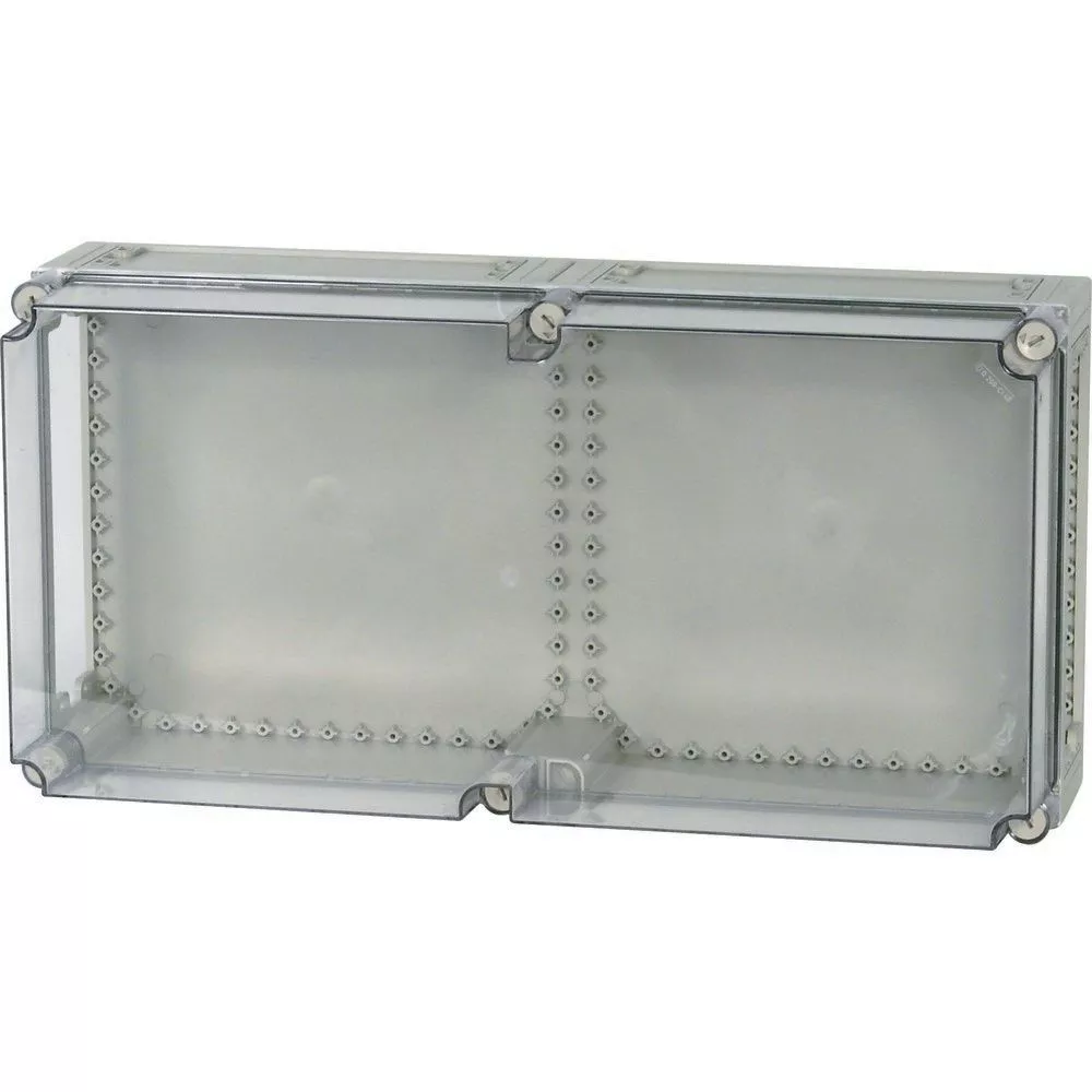 Obudowa bez wyposażenia, charakterystyka materiału Poliwęglan (PC), odporność na porażenia, stopień ochrony IP65, opatentowane zamknięcie pokrywy z wbudowanym wyrównaniem nadciśnienia, ściany boczne zamknięte, wybijana, ściany otwarte na górze i na dole, plombowane zamknięcia pokrywy, RAL 7032, piaskowa (skrzynia dolna), przezroczysta, bezbarwna (pokrywa), głębokość montażu przy płyci montażowej=200mm, wersja pokrywy: przezroczysta, wersja części dolnej: na górze i na dole otwarta