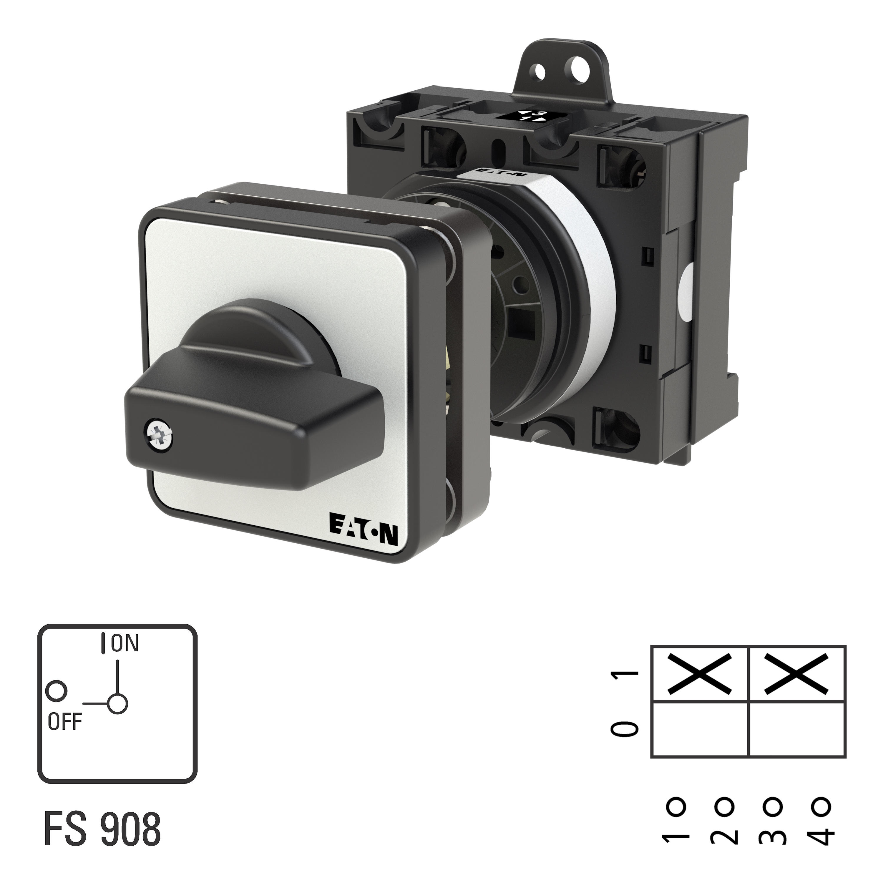 T3-1-102/Z Przełącznik Zał.-Wył., 2 bieg., 32 A, 90 °, montaż rozłączny, pokrętło czarne bez możliwości blokady