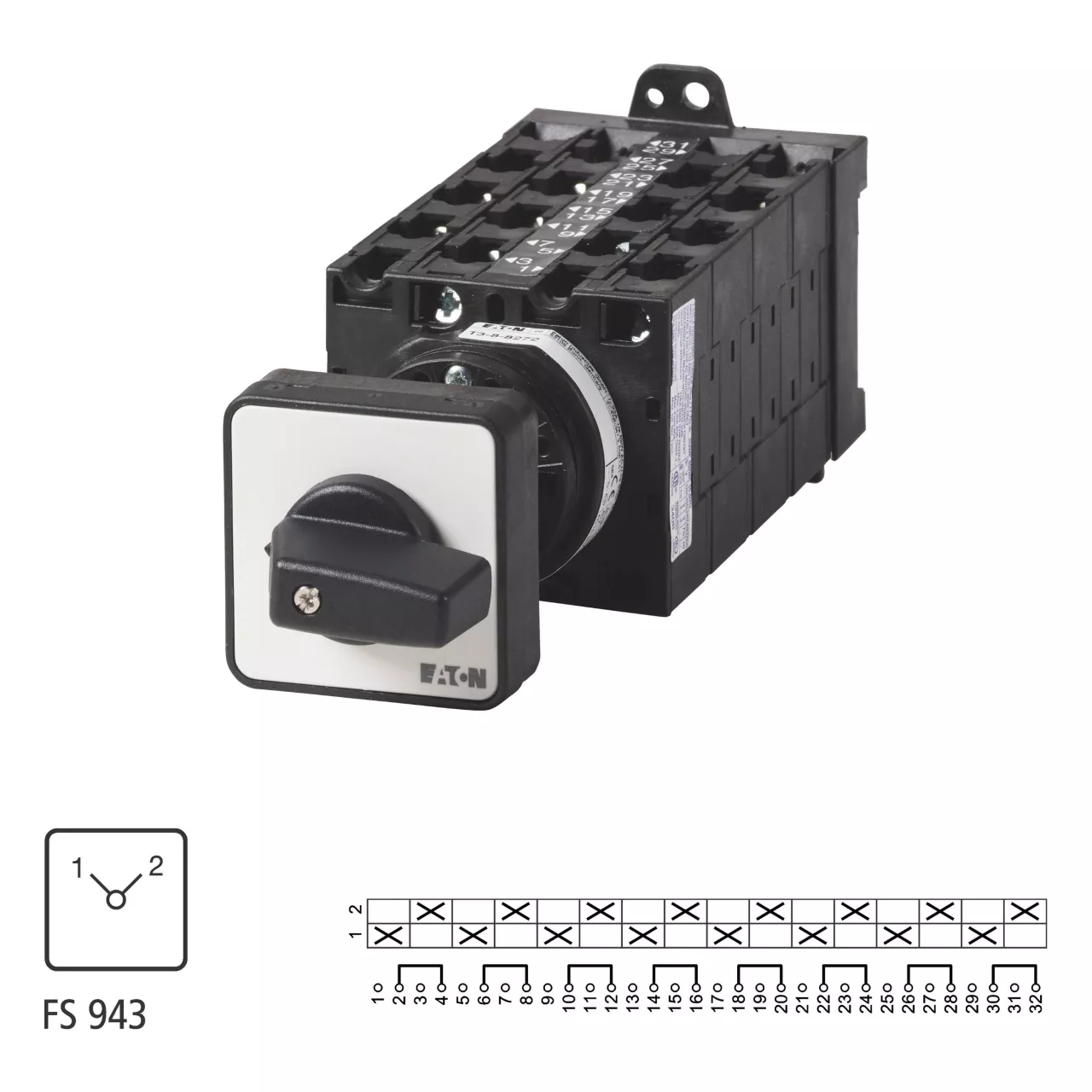 T3-8-8372/Z Przełącznik zasilania, Styki: 16, 32 A, tabliczka: 1-2, 90 °, bez samopowrotu, montaż rozłączny, pokrętło czarne bez możliwości blokady