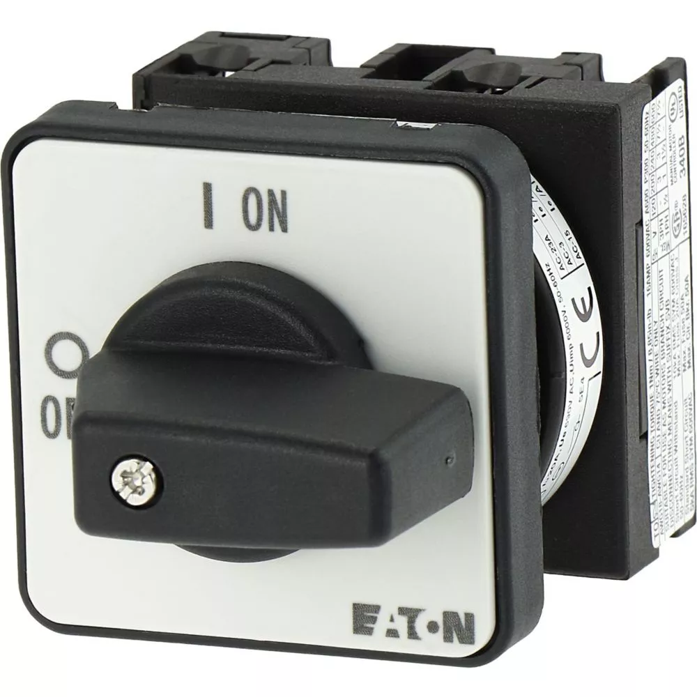 Łącznik krzywkowy wg IEC/EN60947, wielkość konstrukcyjna T0, kształt montażu, tabliczka czołowa 48X48, klasa ochrony na przedzie IP65 z czarnym pokrętłem, pomiarowy prąd stały Iu 20A, znamionowe napięcie pracy Ue 690V, dostępne akcesoria zgodnie z danymi katalogu łączników krzywkowych T. Konstrukcja ogólna: obudowa natynkowa z izolacją, montaż, montaż centralny, montaż pośredni montaż rozdzielacza IVS.