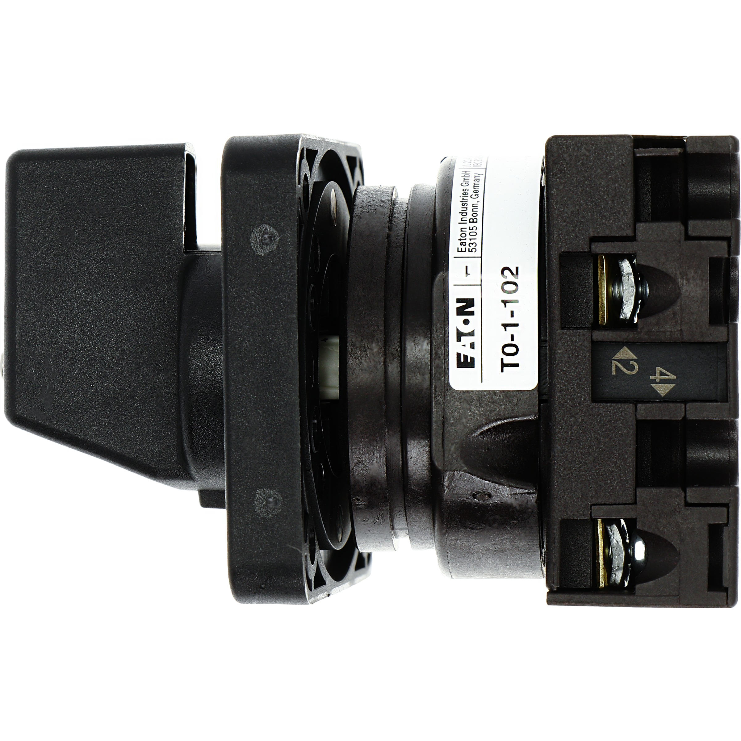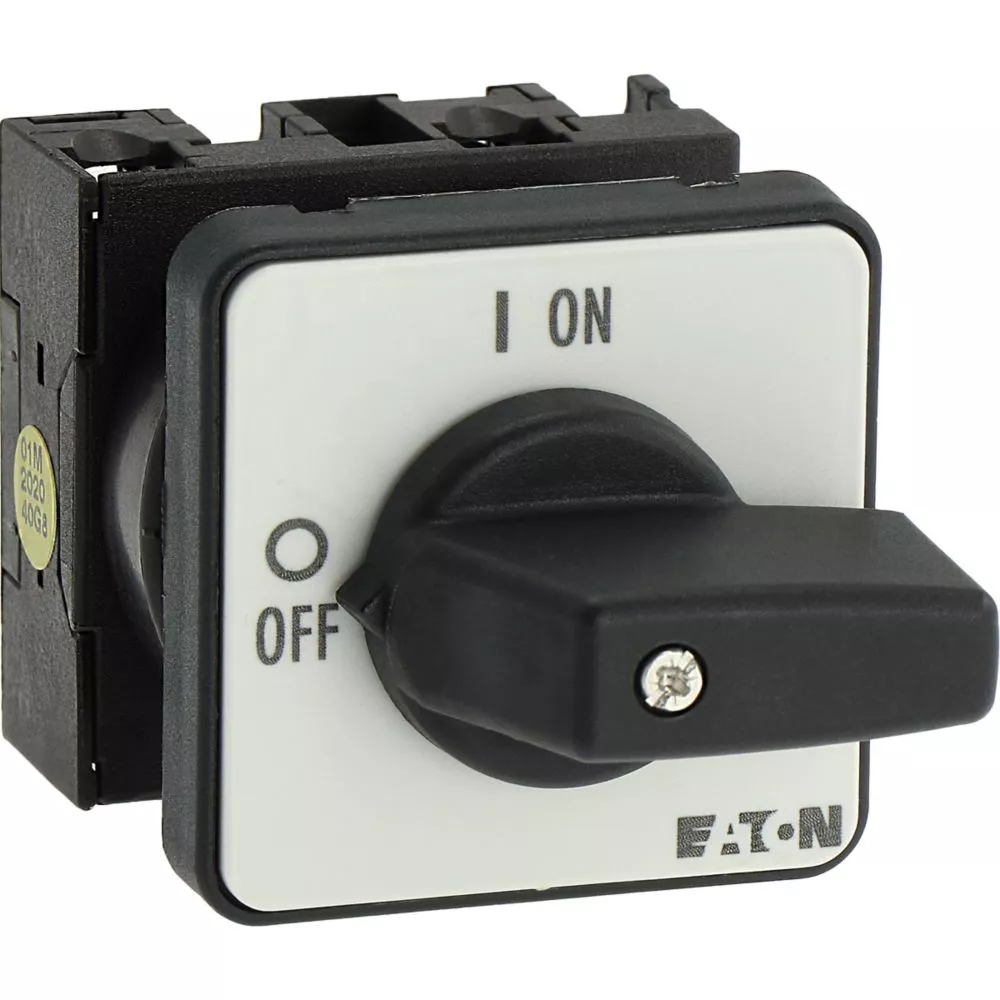 T0-1-102/E Przełącznik Zał.-Wył., 2 bieg., 20 A, 90 °, montaż natablicowy, pokrętło czarne bez możliwości blokady